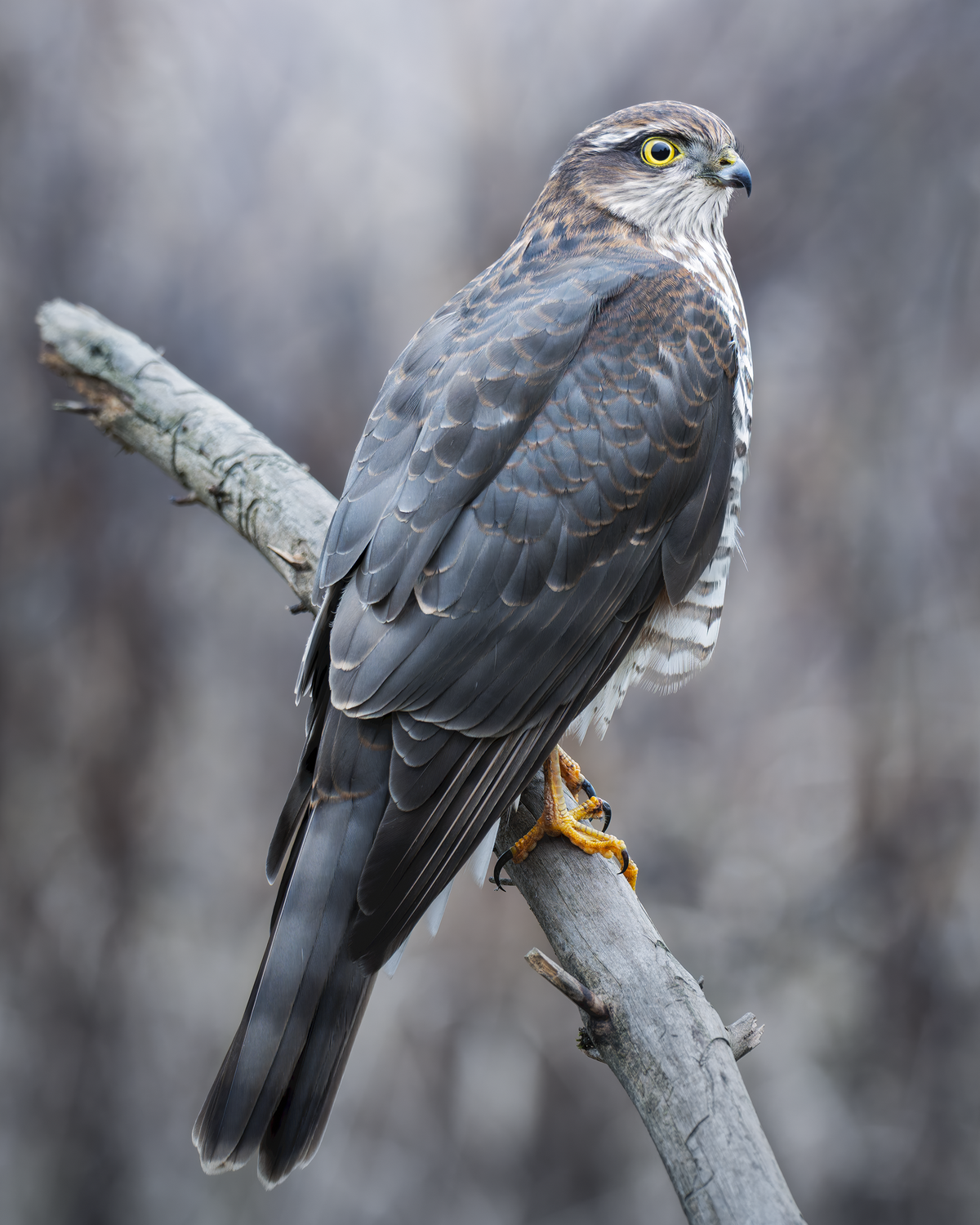 Ястреб-перепелятник — это маленькая хищная птица с короткими и широкими крыльями, а также с длинным хвостом, что помогает ему маневрировать среди деревьев. Взрослый самец достигает 29—34 см в длину и 59—64 см в размахе крыльев. Самки могут быть длиннее самцов на 25 % — половой диморфизм у хищных птиц, когда самка крупнее самца, частое явление.