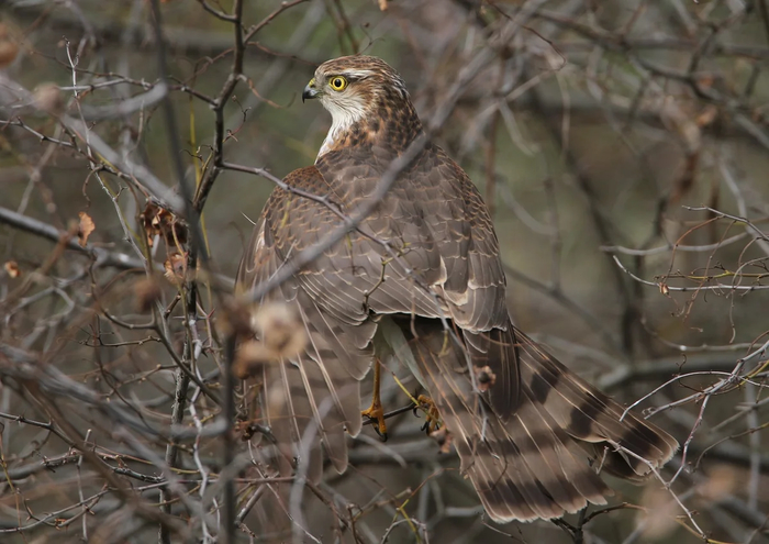 Ястреб-перепелятник не только первоклассный охотник, но и мастер маскировки.