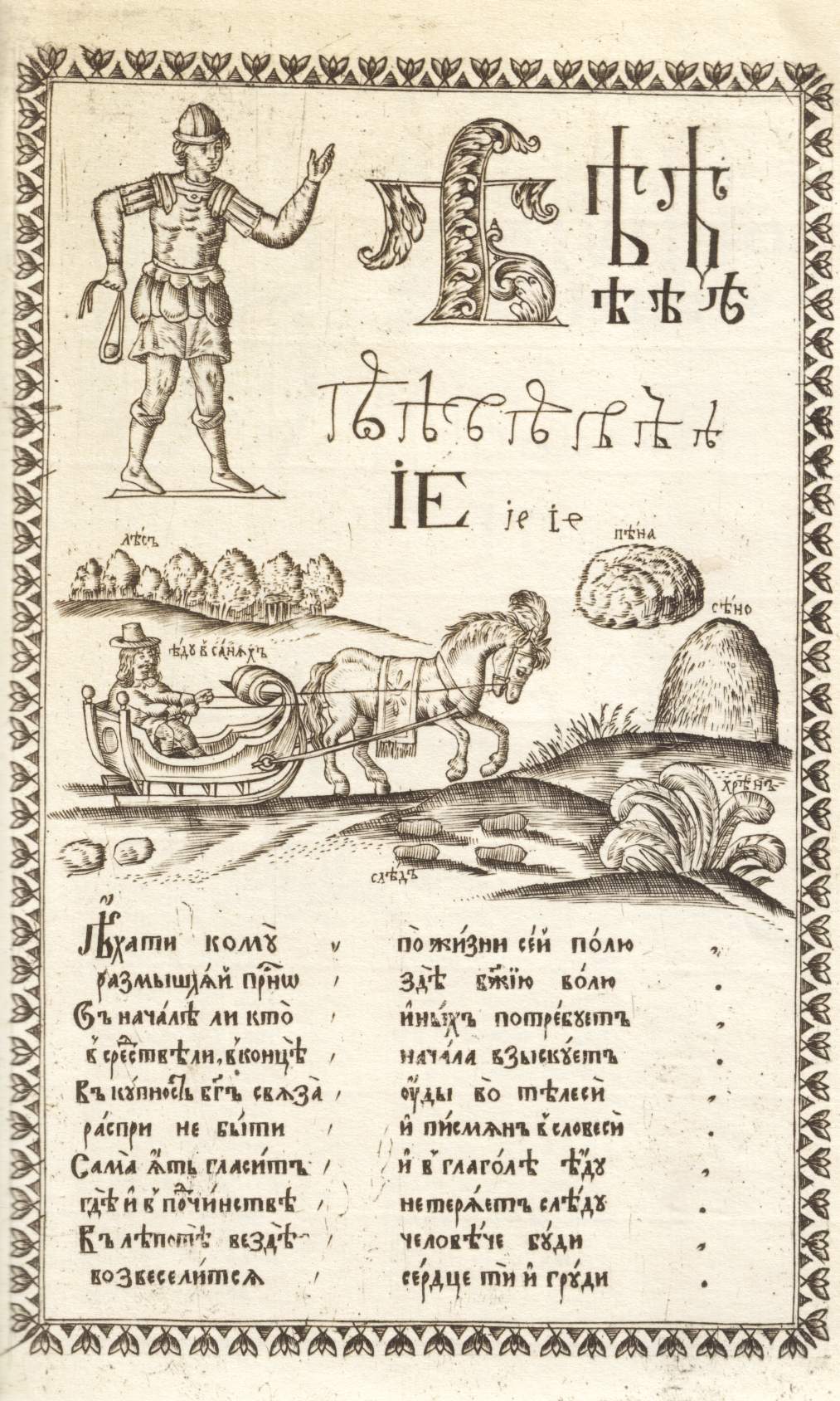 Но в целом-то к примерно десятому веку нашей эры ять читался как [е]. Но не обычный Е, обычный Е в азбуке уже был и писался примерно так же, как сейчас (см выше, буква Есть). Ять имел такую штуку, которую я бы назвала «йотированное придыхание» — [йе], только [й] очень короткое.