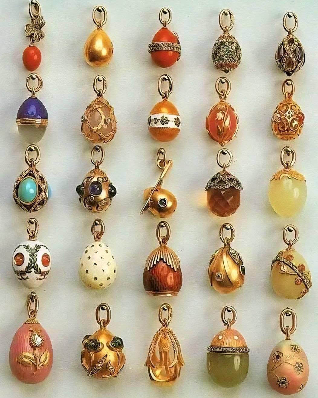 Одной из самых интересных традиций, возникших во время пасхальных празднований позапрошлого века, было коллекционирование ожерелий с подвесками в форме яиц. Начиная с первого дня рождения, каждый год перед Пасхой маленькие девочки получали в подарок небольшой кулон в форме яйца, который можно было повесить на цепочку. Предшественник сегодняшнего браслета-подвески.