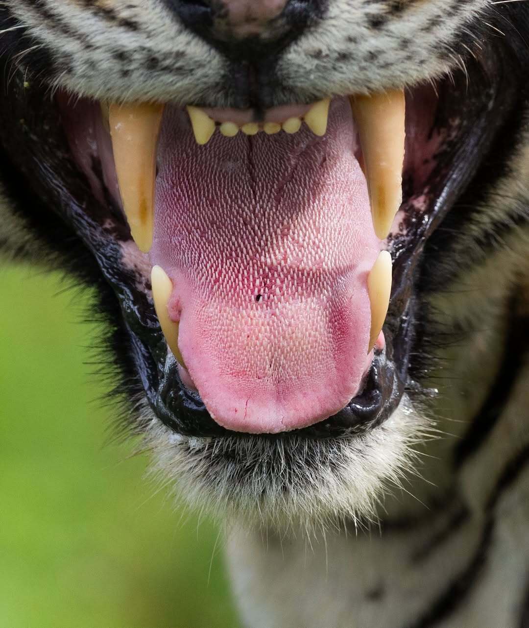 Язык тигра - замечательный инструмент. Покрытый острыми, обращенными назад шипами, называемыми сосочками, он действует как наждачная бумага, позволяя тиграм эффективно отделять мясо от своей добычи и удалять мех или перья. Эти шипы также помогают тиграм в уходе за шерстью и удалении паразитов, способствуя заживлению ран.