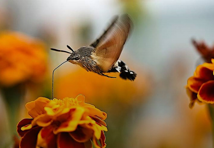 Так, постойте… но это же не колибри? Конечно, нет. Это обыкновенный языкан, бабочка из семейства бражников.