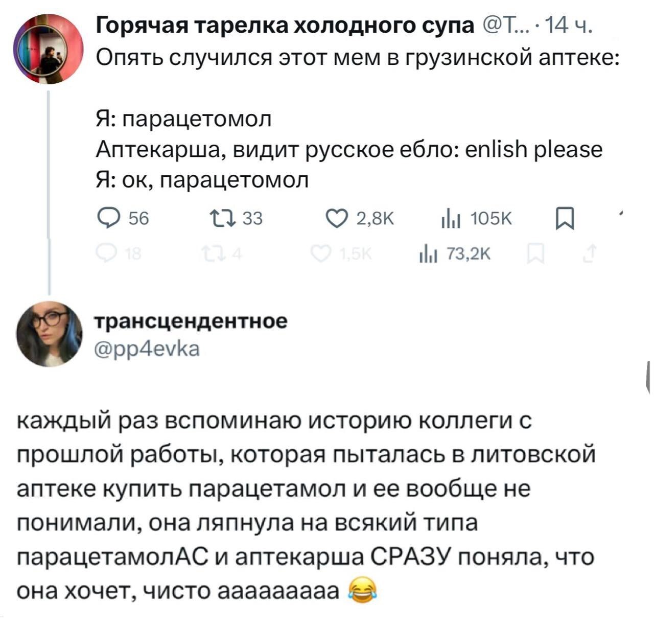 211 wertwol Языковой барьер 1 день назад Юмор X (Twitter) Скриншот Иностранные языки Комментарии Парацетамол 36 1 1 1 Ещё 0