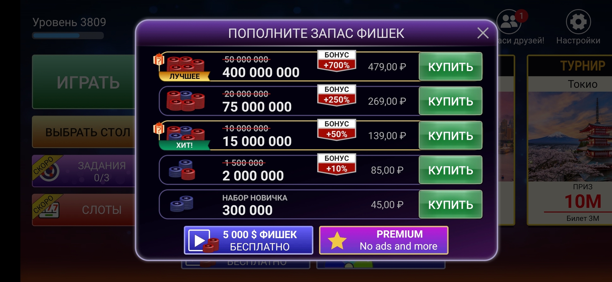 400 млн фишек можно по акции купить за 479 рублей. Заманчиво... Но у меня, спустя время: