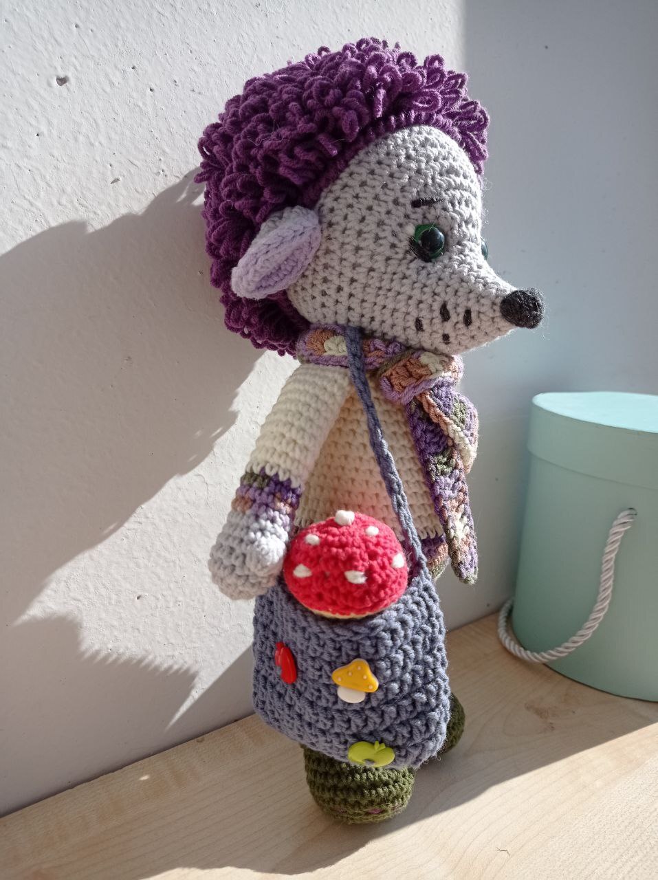 И запаслив: яблочко в иголочках, грибочек в сумочке.