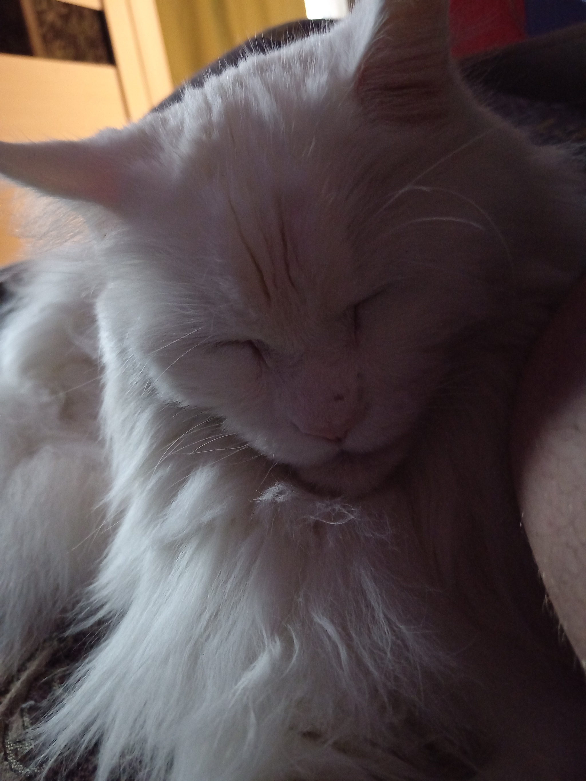 По вечерам, когда все ложатся, а она доедает ужин, она с кухни людей пингует жалостливым мявом. Стоит ей ответить, бежит ))