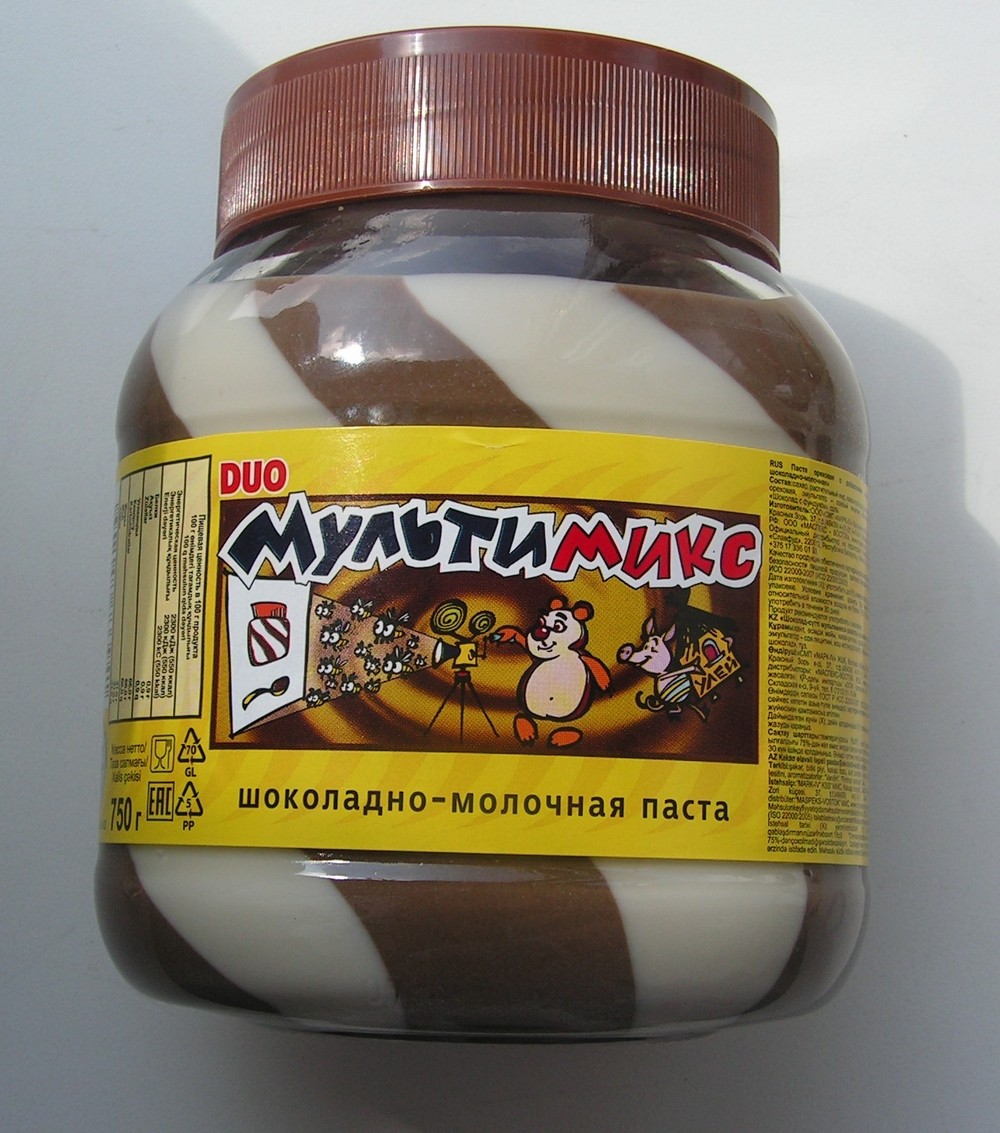 Шоколадная паста Нутелла (Nutella)? Существовала только одноцветная (тёмный шоколад), либо была двухцветная (тёмный и светлый шоколад, закрученные по спирали).