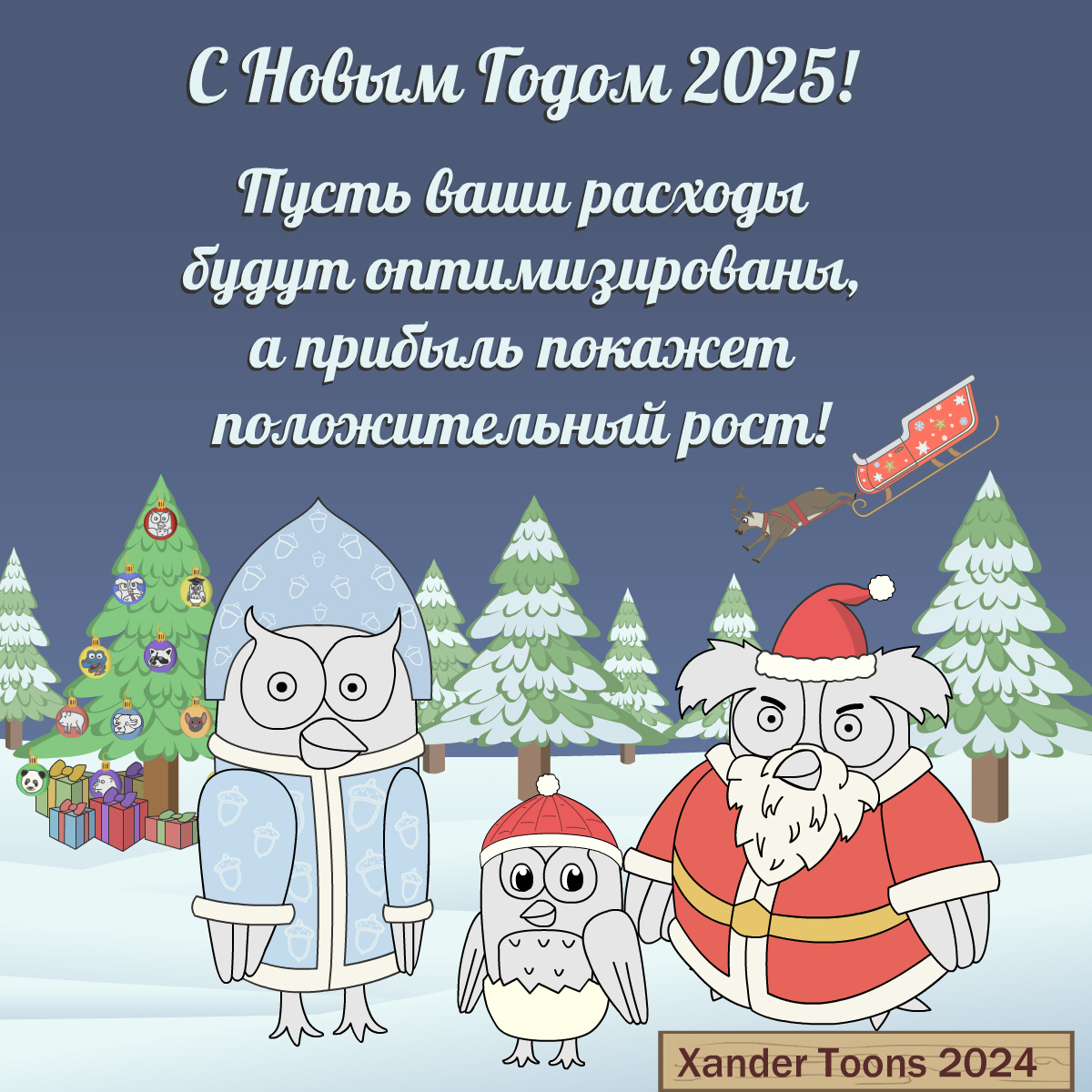 Мы с Совой и всем эффективным лесом поздравляем вас с наступающим Новым годом 2025!