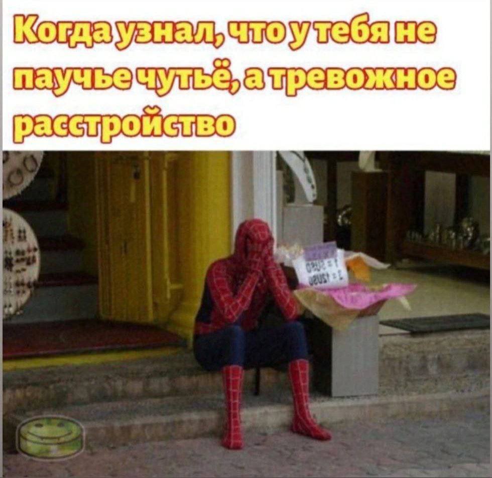 77 smeximemi 9 месяцев назад Эх)) Взято тут Юмор Неожиданно Жизненно Мемы Человек-паук Fail Настроение Реакция Telegram (ссылка) Картинка с текстом Тревожное расстройство Паучье чутье 2 1 1 Ещё 0
