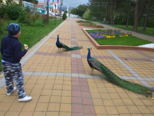 Вся эта погоня продолжалась больше получаса, я руководила, как могла. В конце его поймали, он клюнул одного из них и сбежал. Походу павлин опытный был.