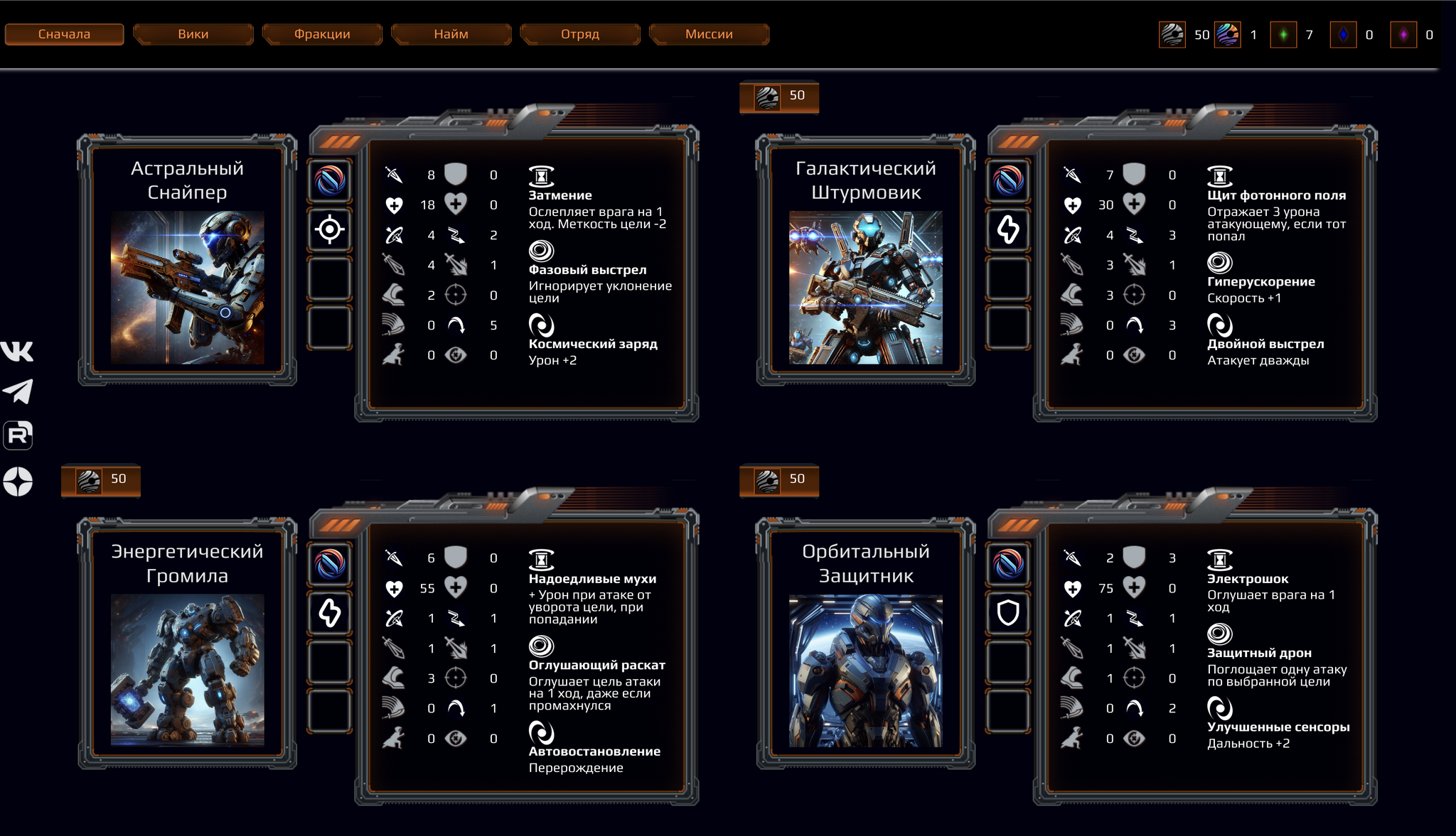 После выбора фракции игроку становится доступен найм персонажей в разделе «Найм». Найм требует продуманного подхода — от него зависит эффективность вашего отряда.