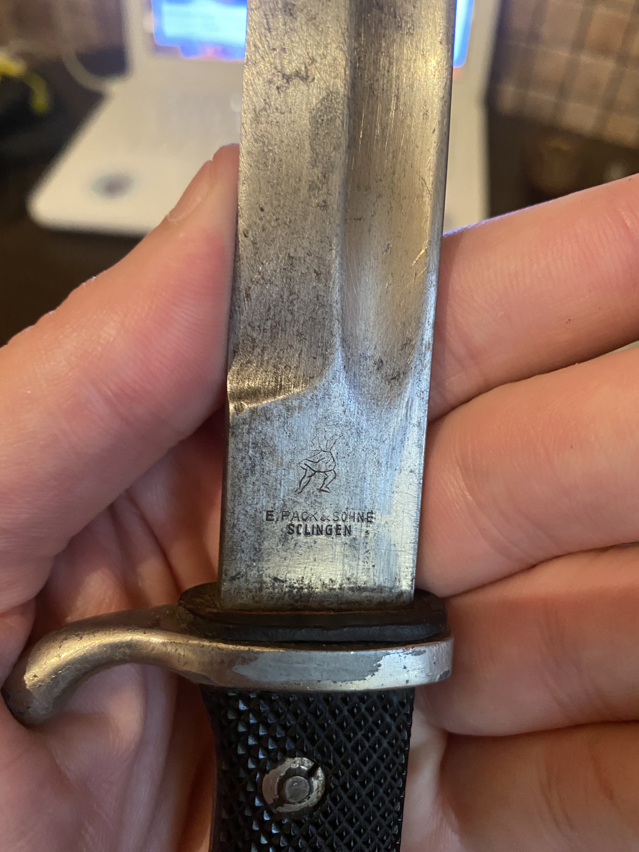 36 ipoloz Эхо войны… 2 года назад В горах чего только не найдешь. Нож не боевой. Это парадный штык-нож рядового состава Вермахта. Клейма читаются. Лезвие крепится к рукояти одной заклепкой, в отличии от боевого. Значит и крови на нем нет. А такого красавца нашел в ручье мой друг. [моё] Оружие Нож Парабеллум Коллекционирование Мобильная фотография Кавказ Длиннопост Ещё 0