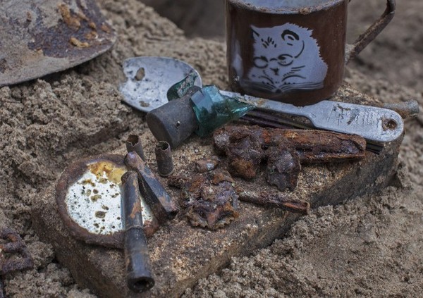 Все личные вещи были собраны в отдельный контейнер. У молодого лейтенанта был диск для ппд , так и не отстрелянный, два курительных мундштука и ложка, благодаря которой мы его опознали.