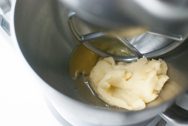 4. Перекладываем тесто в миску. Я, как обычно, делаю замес планетарным миксером, но можно обойтись обычным (насадка крюки) или вовсе делать это лопаткой, просто займет немного больше времени и сил.