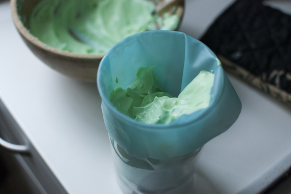 8. Перекладываем тесто в кондитерский мешок или пакет с зип-локом. Не нужно надеяться на авось и класть в обычный пакет:) Лопнет, вот готова с вами поспорить на что угодно, что он тут же порвется. Если у вас нет никакого прочного мешка и вы не умеете сворачивать кульки из бумаги для выпечки (в интернете есть инструкции), то вы можете просто выложить аккуратно ложкой. получатся профитроли.