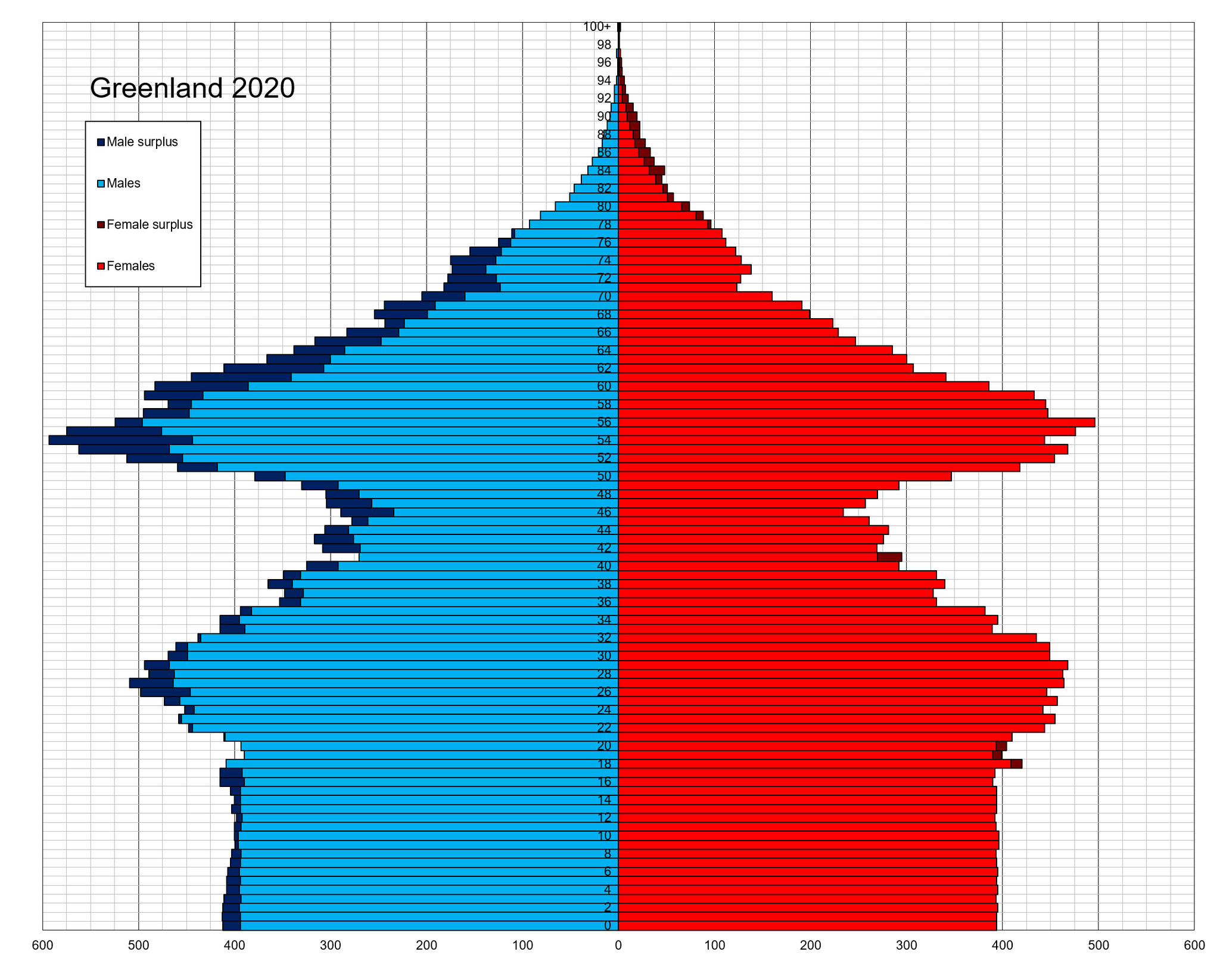 Вот так выглядит половозрастная структура общества в Гренландии: