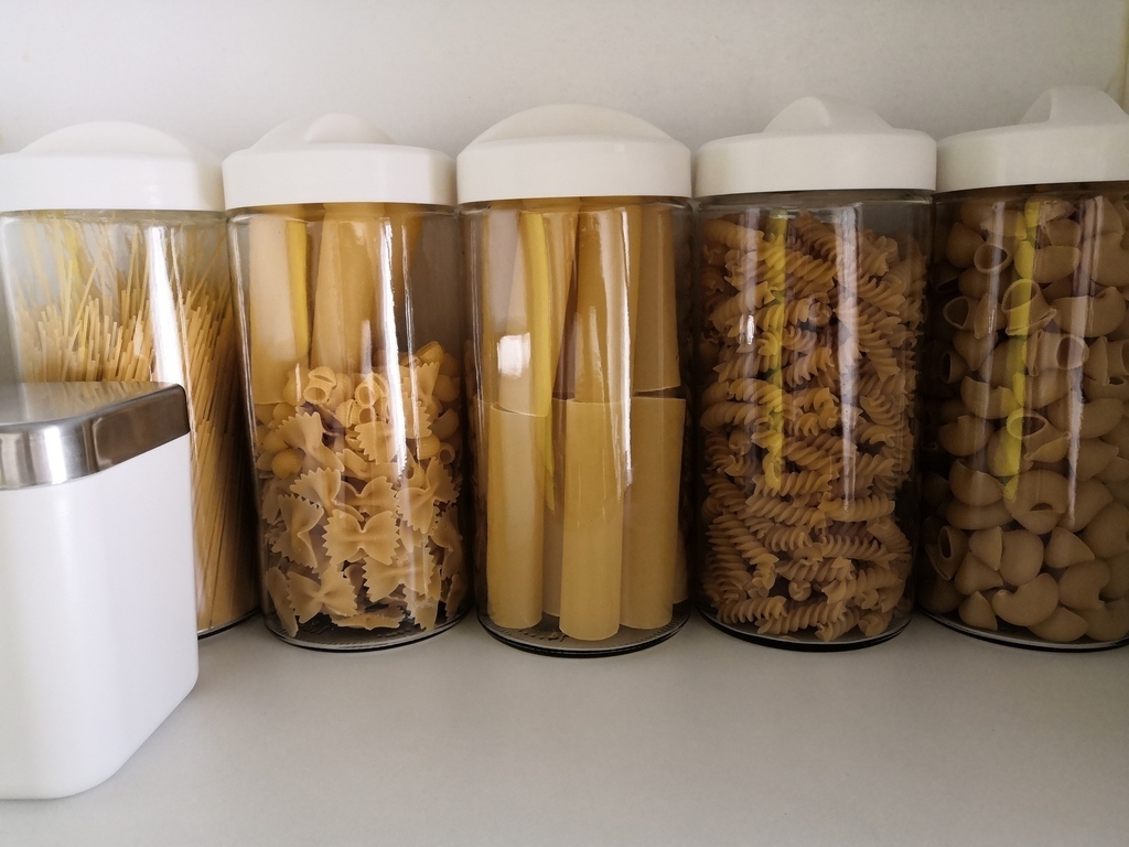 Мужик, купи пластиковые здоровые контейнеры. Я так делаю, когда заканчивается, тупо покупаю сразу много и туда, контейнер на 5 литров, рис, гречка, макароны и т.д.