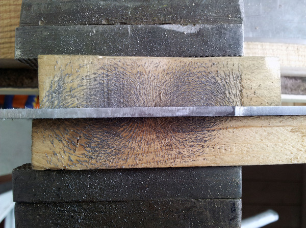 Небольшой оффтопик. Глядите как прикольно расположились линии магнитного поля вокруг заготовки: