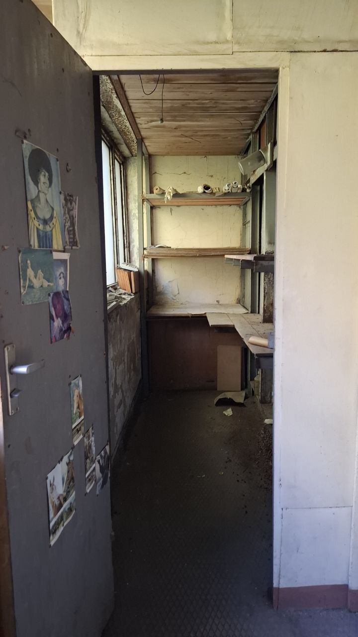 Это был чей-то тихий уголок, не забываем про мужские слабости( на двери) Лошади и женщины...