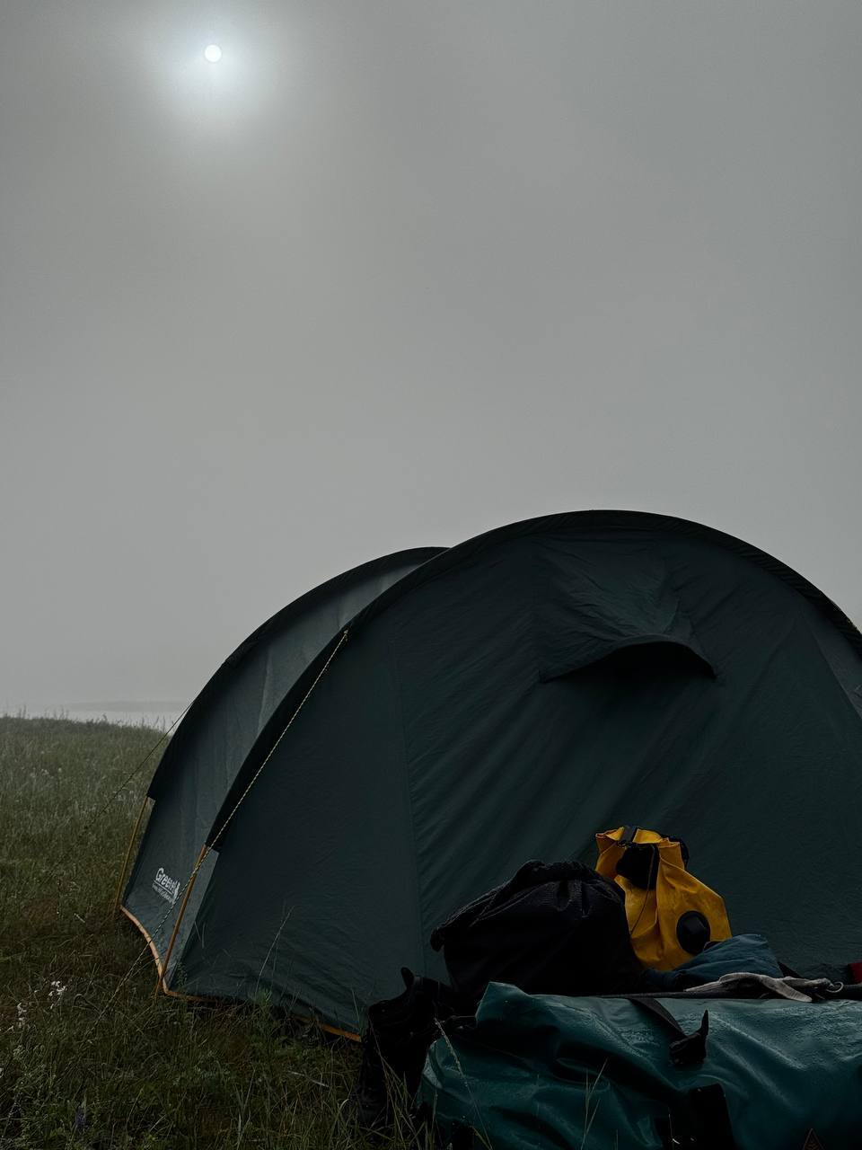 Утром нас накрыл непроглядный туман, пропитавший влагой оставленные на улице вещи не хуже проливного дождя. Мы было уже и отчаялись, но увидели на востоке свет. Свет, пронзающий облака и согревающий наши косточки.