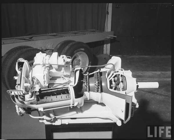 Что ждало их при внимательном рассмотрении? А при внимательном рассмотрении двигатель все-таки обнаруживался, только ни разу не дизель, а специально сконструированная для наземного транспорта фирмой Боинг двухвальная газотурбинная установка. Несложной конструкции ГТД с центробежным компрессором. На тот момент ее мощность была относительно невелика, всего 175л.с., но особенности многовальной турбины позволяли ей многое..