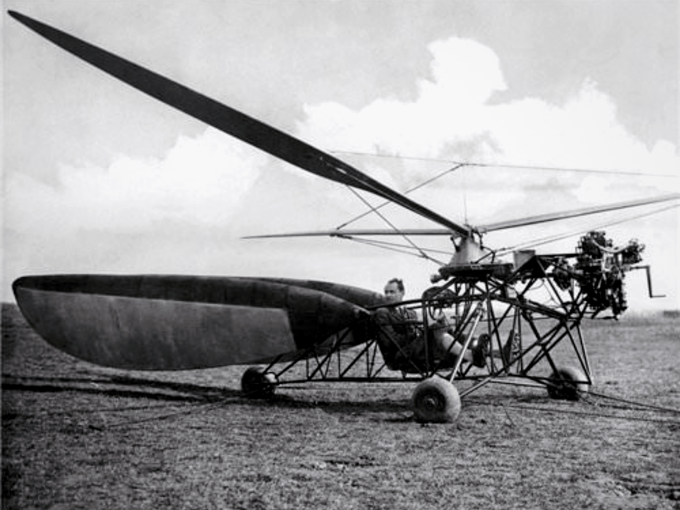 На этом снимке датированным 1931 годом запечатлён экспериментальный одноместный вертолёт Hafner RII "Revoplane" конструкции одного из пионеров вертолетостроения - Рауля Хафнера.