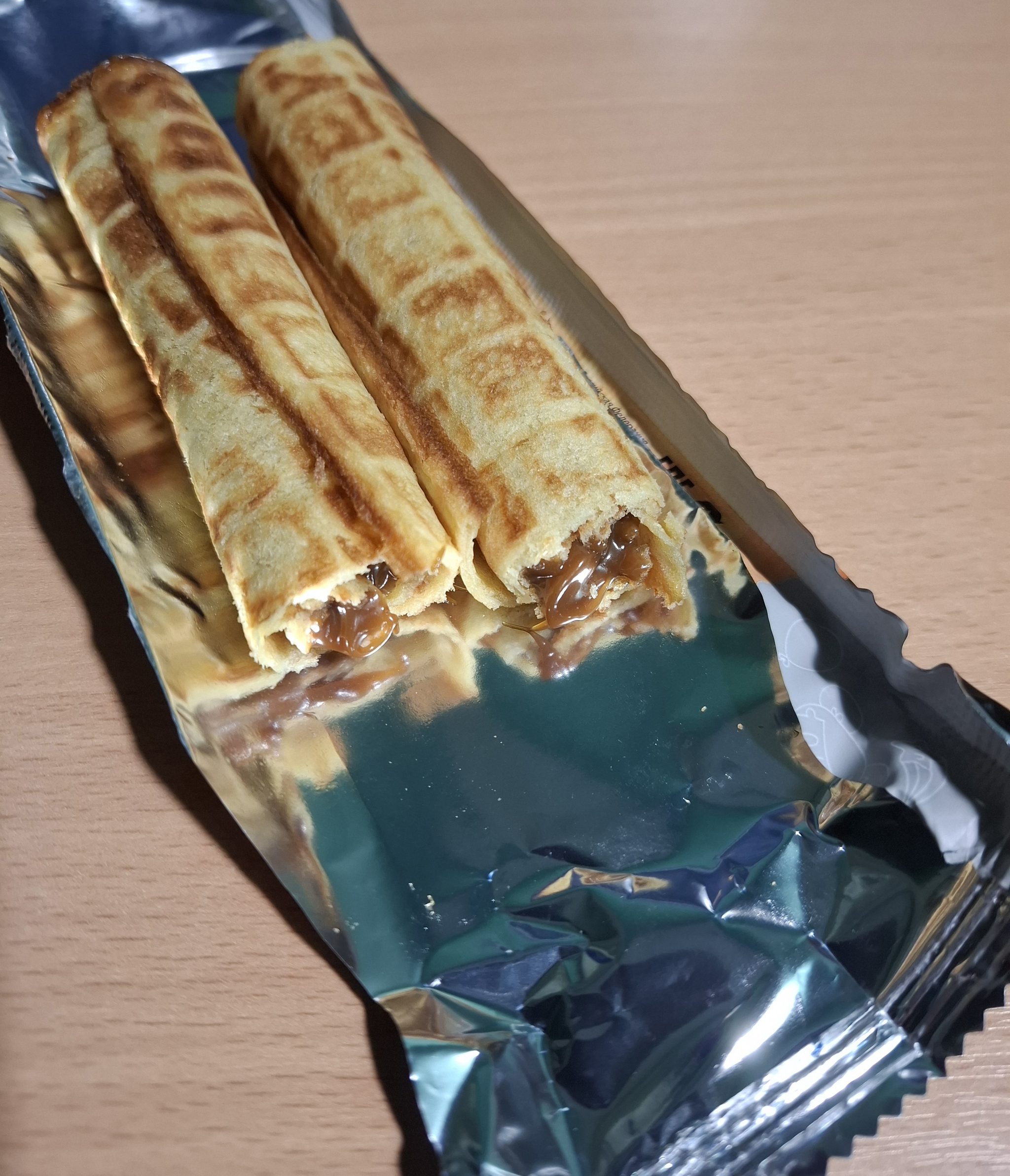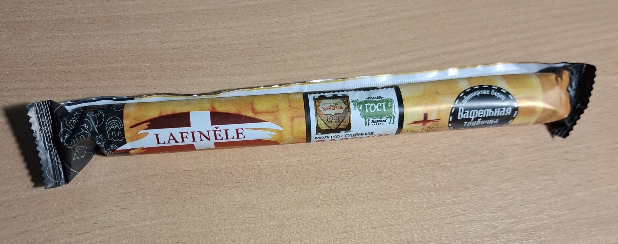 Тут сразу видно, сгущенка нормальной консистенции, вкус как и положено обычной варёной сгущенки. А вот вкус самой трубочки не изменился, только просроченная совсем высохла, а эта мягкая.