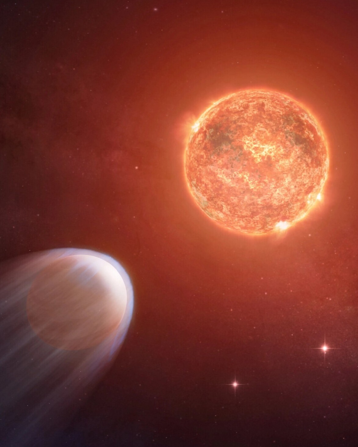 Из-за экстремально сильного влияния приливных сил со стороны родительской звезды планета имеет искаженную, вытянутую форму.