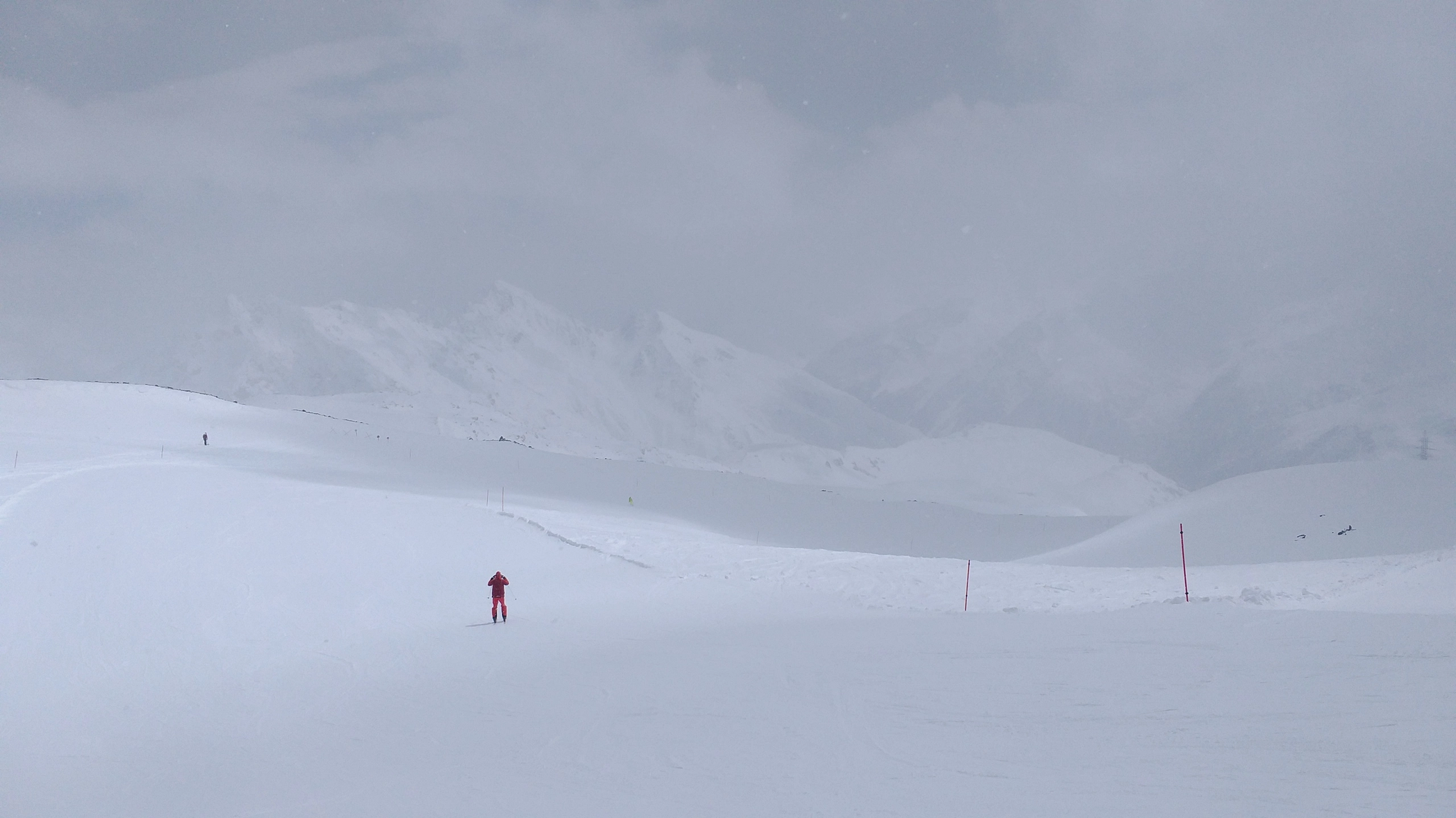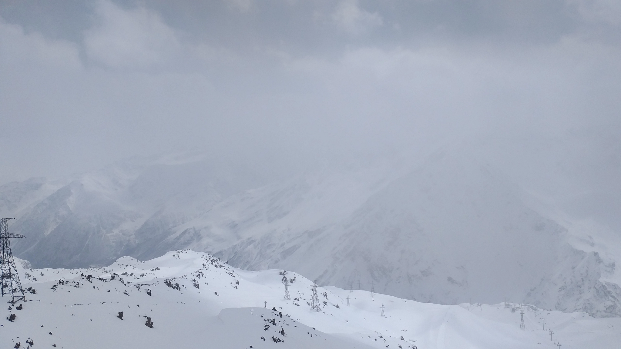 В момент нахождения на самом Эльбрусе налетел ветер, который поднял взвесь снега и временами видимость была почти нулевая. Хотя в таком виде белой мглы тоже есть что-то завораживающее.