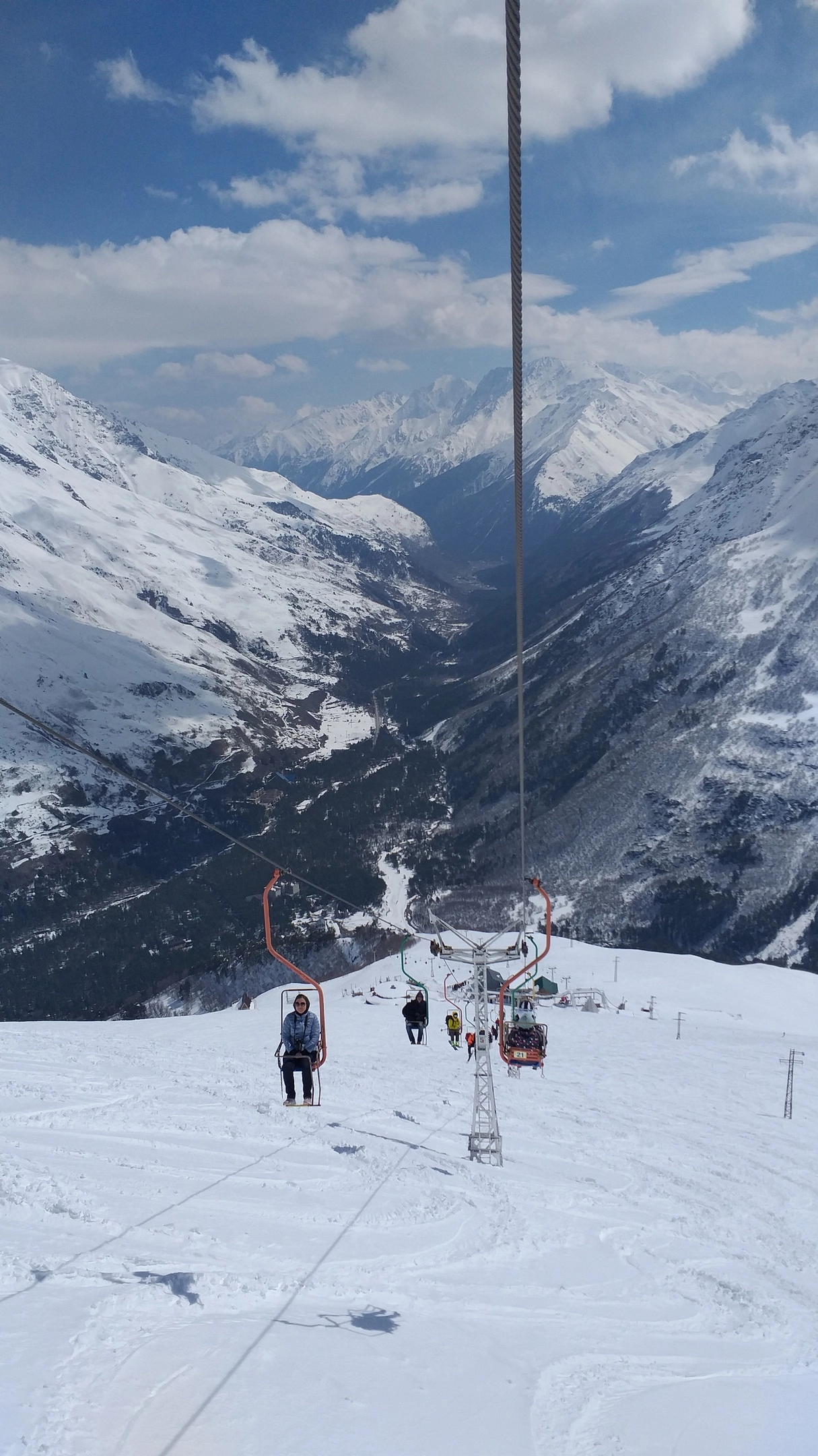 На площадке у подъемника стоят снегоходы , которые могу поднять вас выше за отдельную плату. Цена - от 1000р с человека в зависимости от конечной точки маршрута. Мы поднялись на высоту 4200м. Поездка на снегоходе была хоть и короткой, но очень захватывающей)
