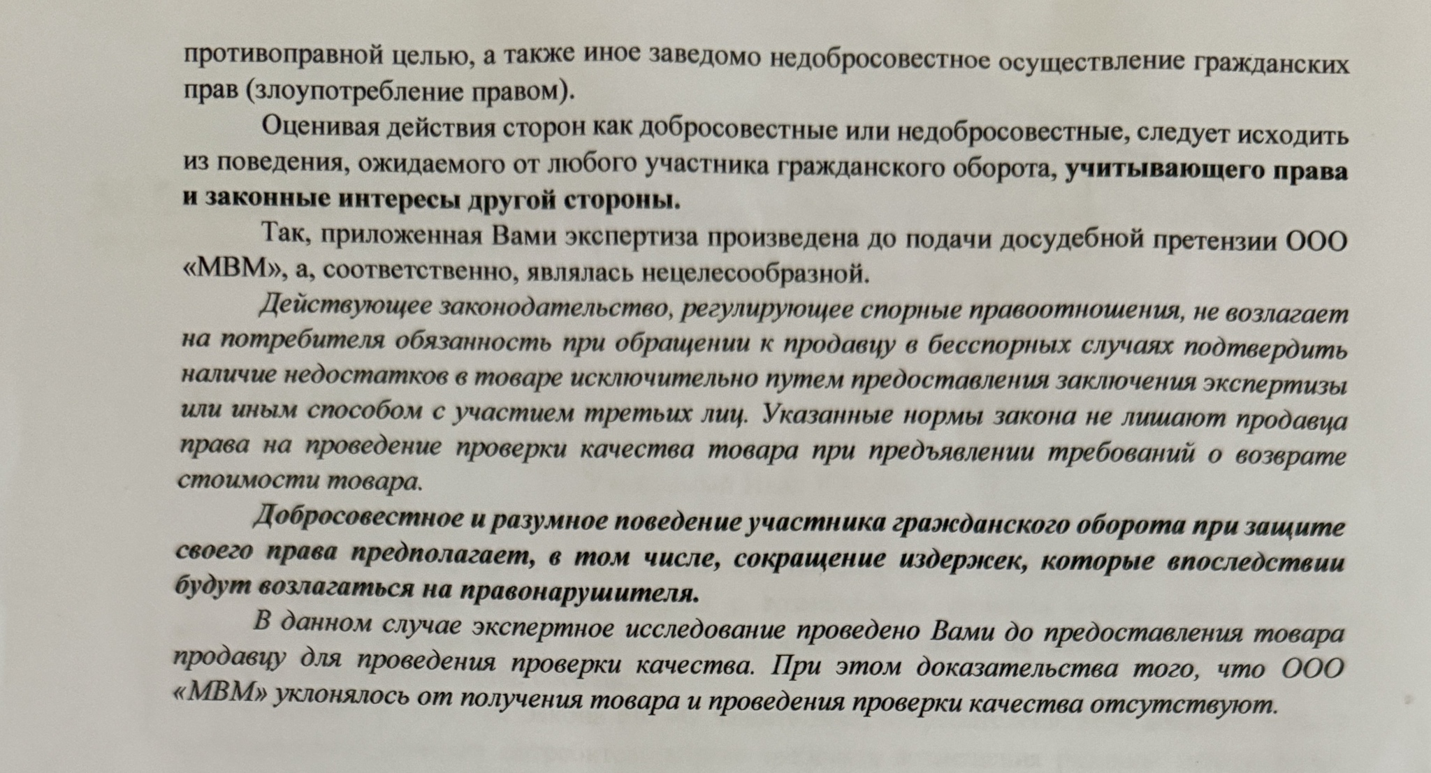2. «Злоупотребление правом». Это звучит как оскорбление. Я, покупатель, который купил бракованный товар, потратил время и деньги на доказательство этого факта, — «злоупотребляю». А они, продавец, реализовавший дефектный товар, — добросовестные участники оборота. Логично?
