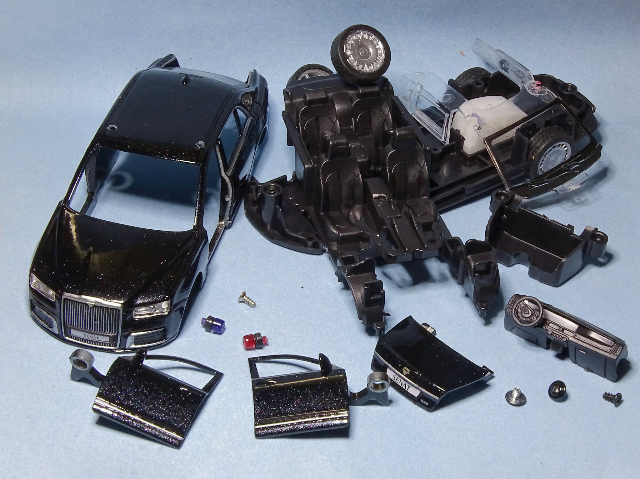 А ещё упоминал о плане сделать модели ещё интереснее. Вот время и настало! И первым из серии электрифицированных и доработанных моделей от «Технопарка» будет седан Аурус «Сенат». Разбирается модель легко. Внутри всё выглядит незамысловато и просто, но все крепления продуманы.