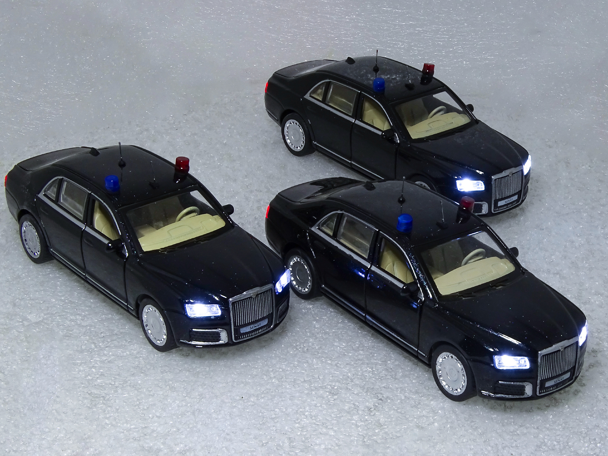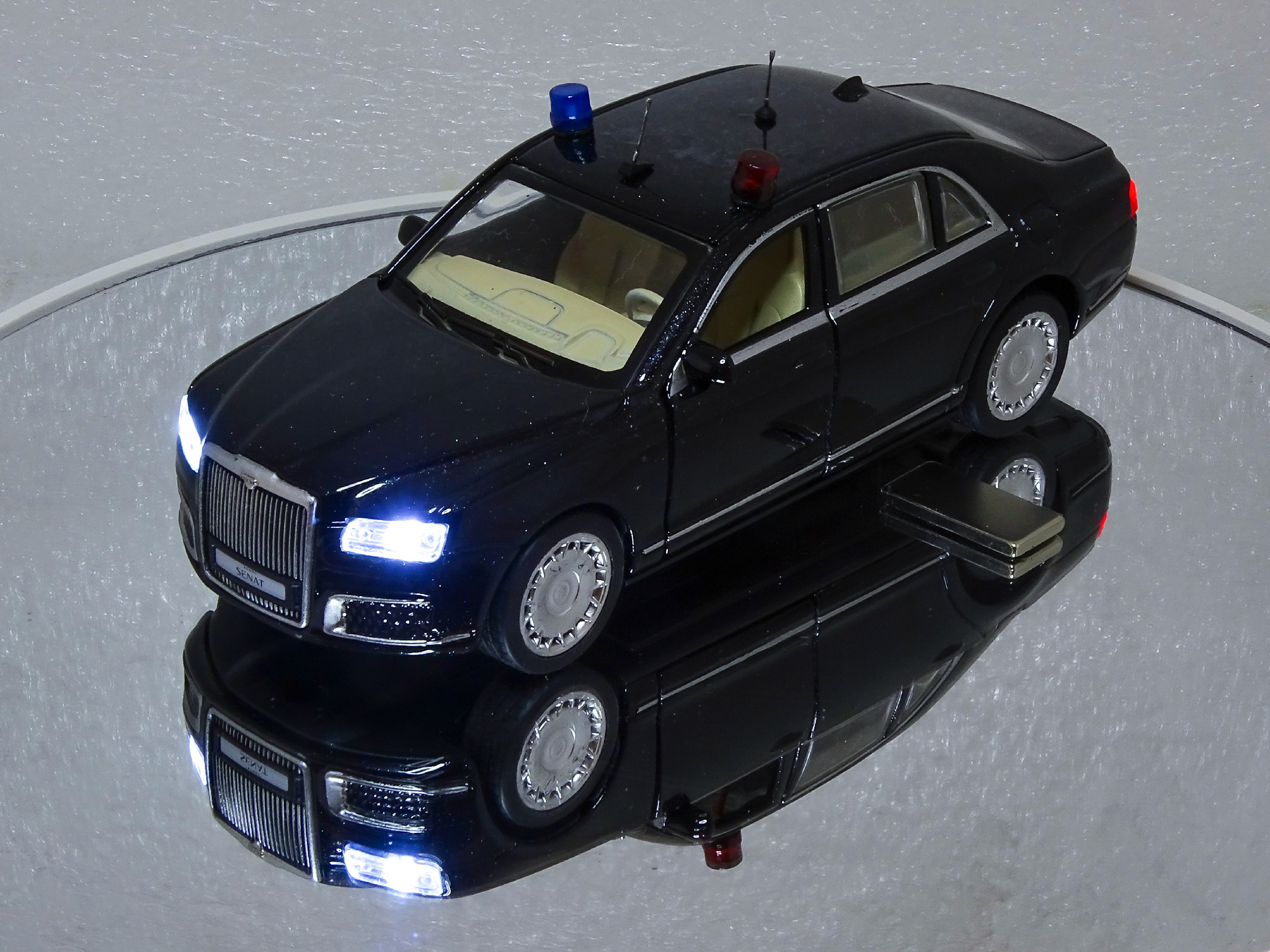 Рис. 10. Электрифицированная и доработанная модель автомобиля Аурус «Сенат» от «Технопарк» с горящими фарами и задними фонарями