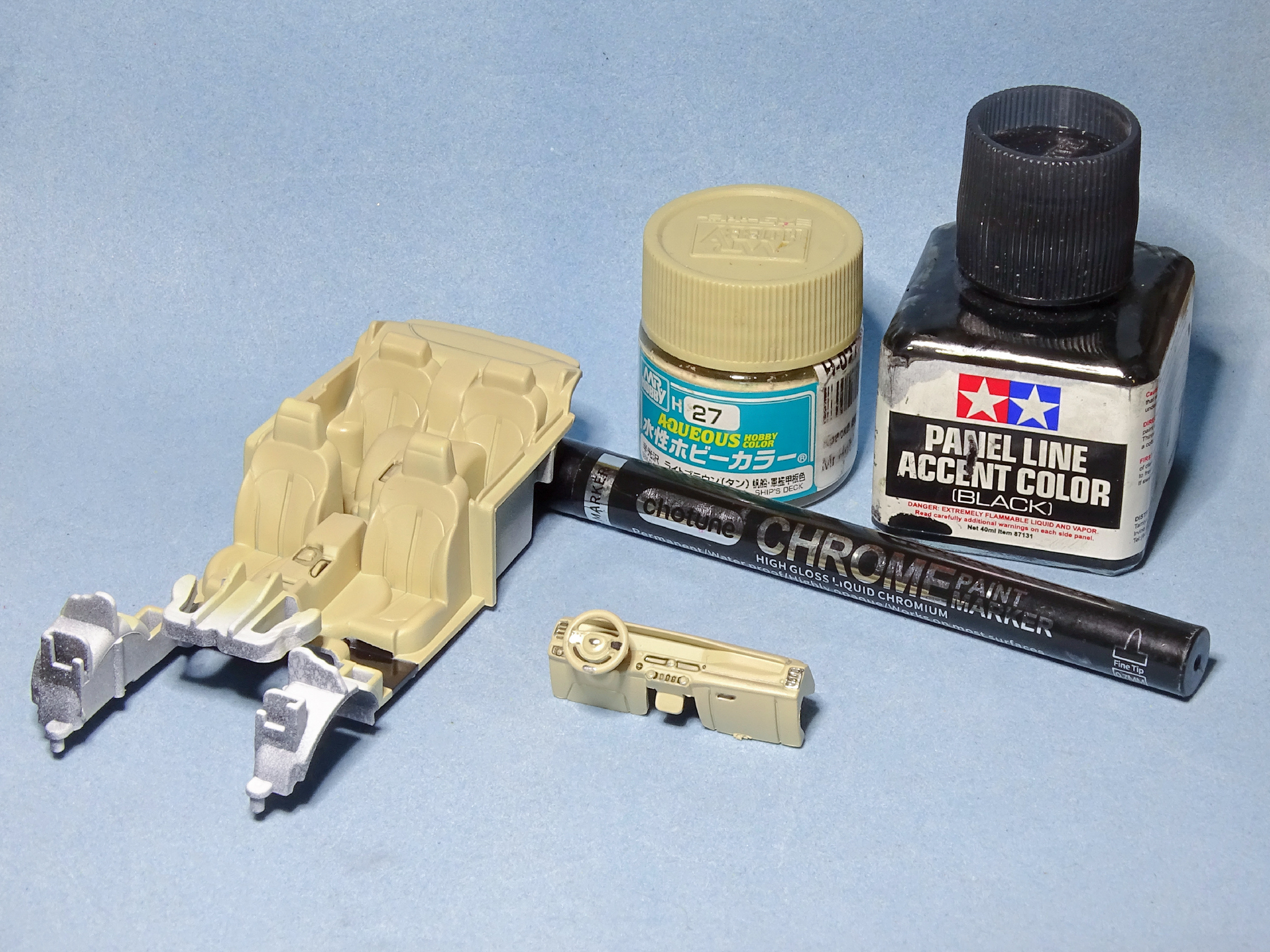 Теперь окрасим детали интерьера с помощью модельной химии от Mr.Hobby и Tamiya.