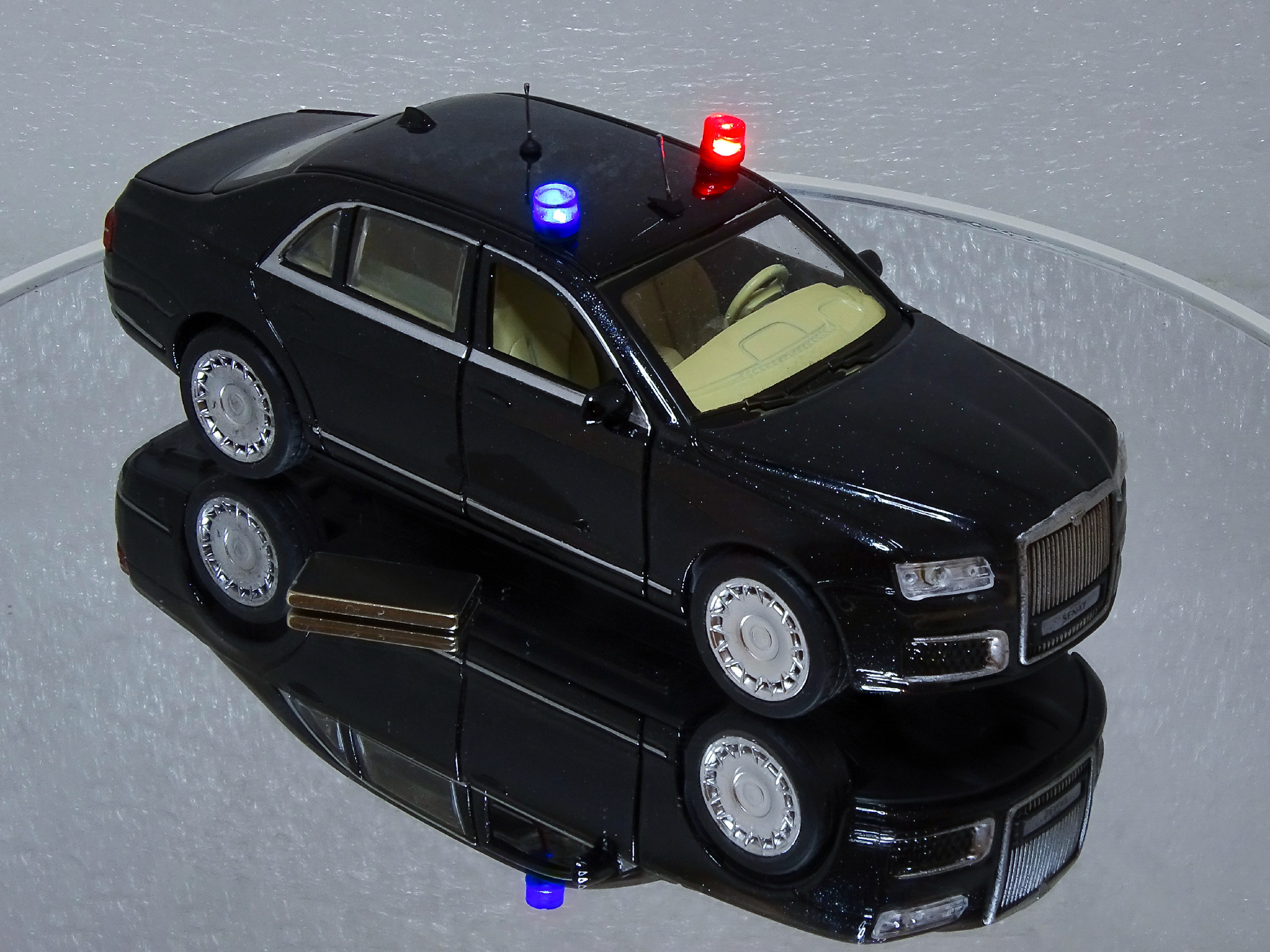 Рис. 12. Электрифицированная и доработанная модель автомобиля Аурус «Сенат» от «Технопарк» с горящими проблесковыми маяками