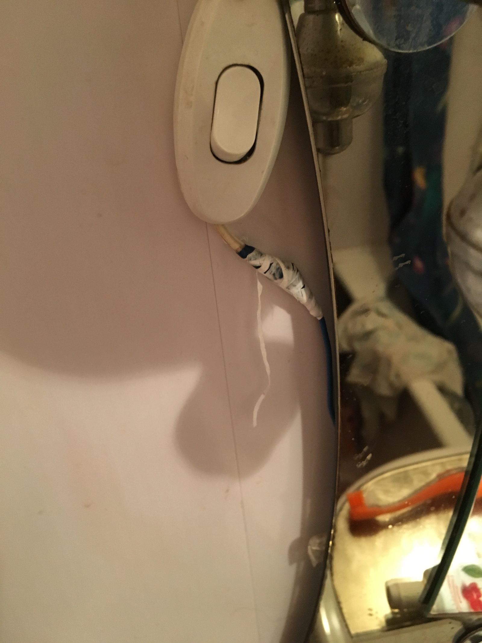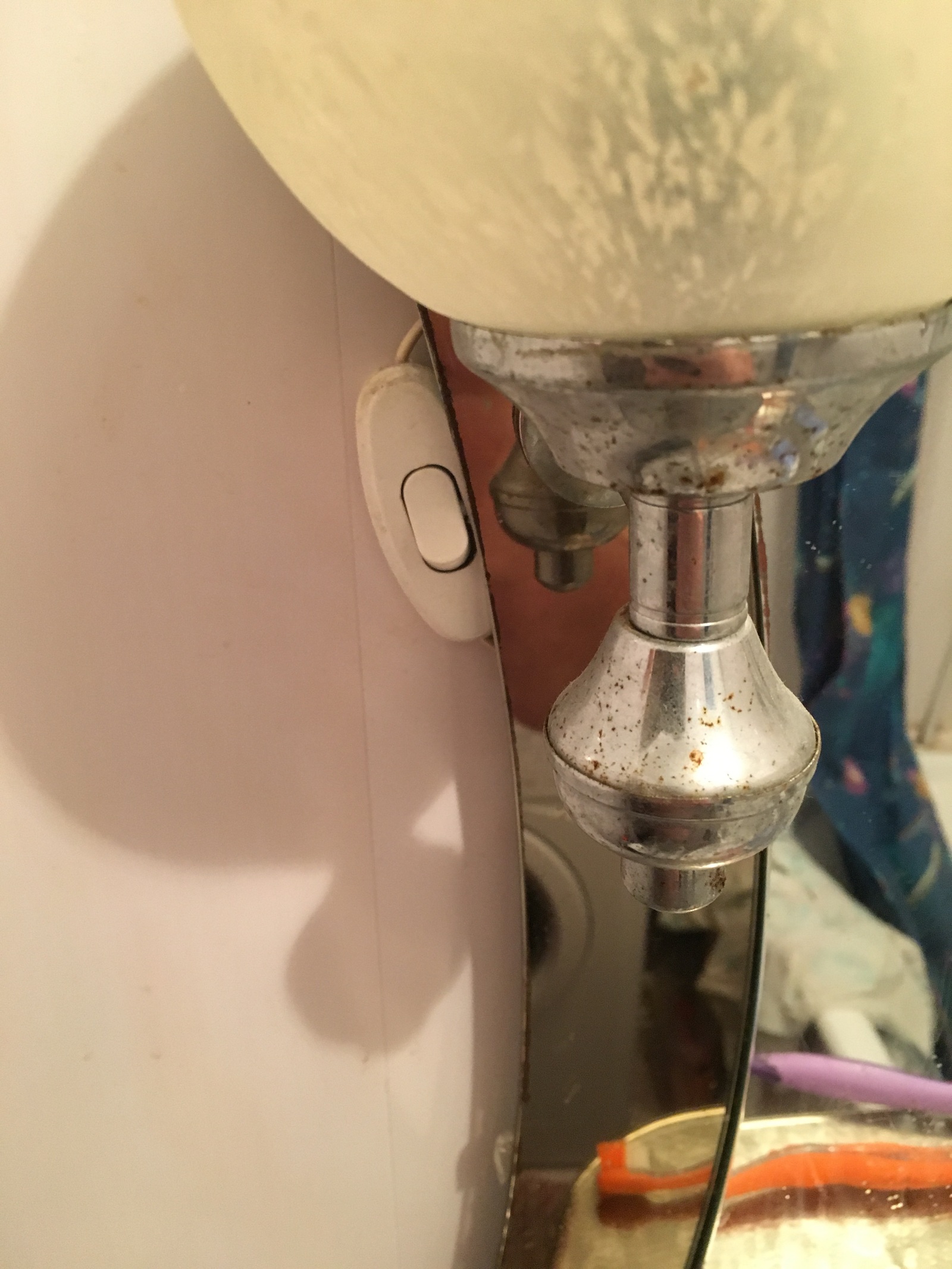 На съемной квартире, был обнаружен светильник в ванной возле зеркала,