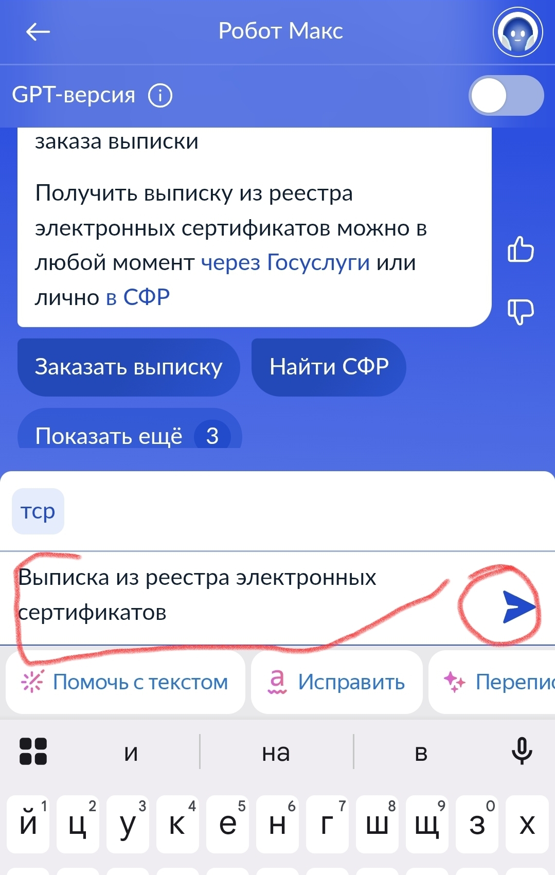 Скопируйте текст обращения и вставьте в окно для текста обращения. Поправьте группу инвалидности, дату и номер вашего заявления на портале Государственных услуг.