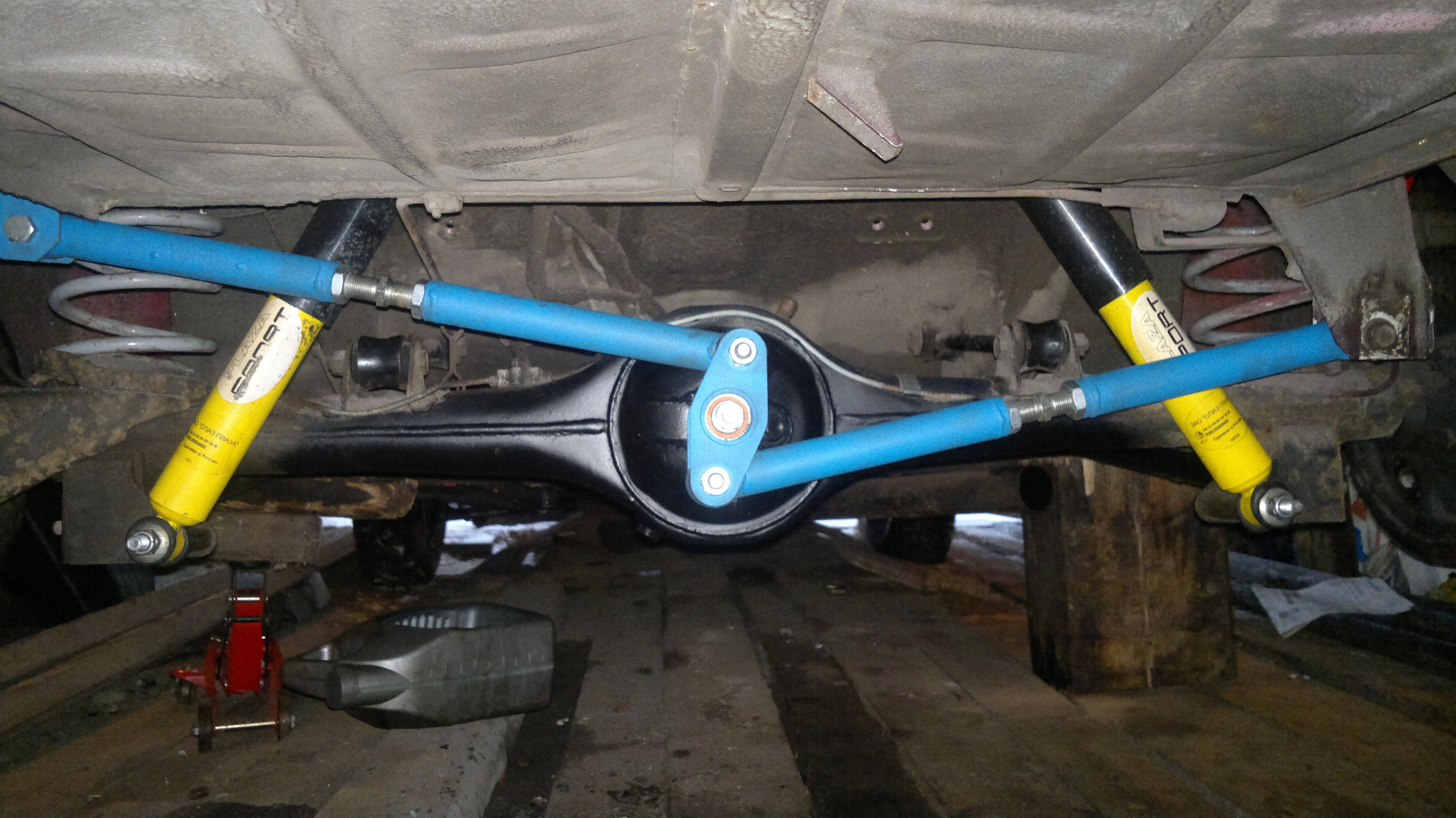 Далее, тяги бывают реактивными, это вспомогательные рычаги (да-да), которые помогают основным элементам подвески воспринимать различные усилия, такие как тяговые и продольные силы возникающие при S-образном изгибе рессор, предотвращая проворачивание ведущей оси в рессорных подвесках, и направляющие и удерживающие мост в случае с пружинной или иной нерессорной зависимой подвеской. И полностью нести функцию продольных рычагов, в этом вопросе понятие тяги весьма растяжимое.