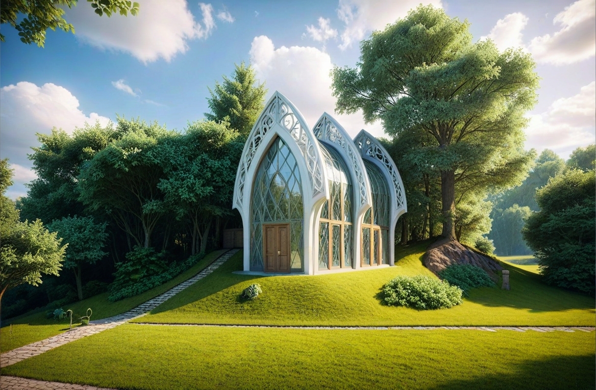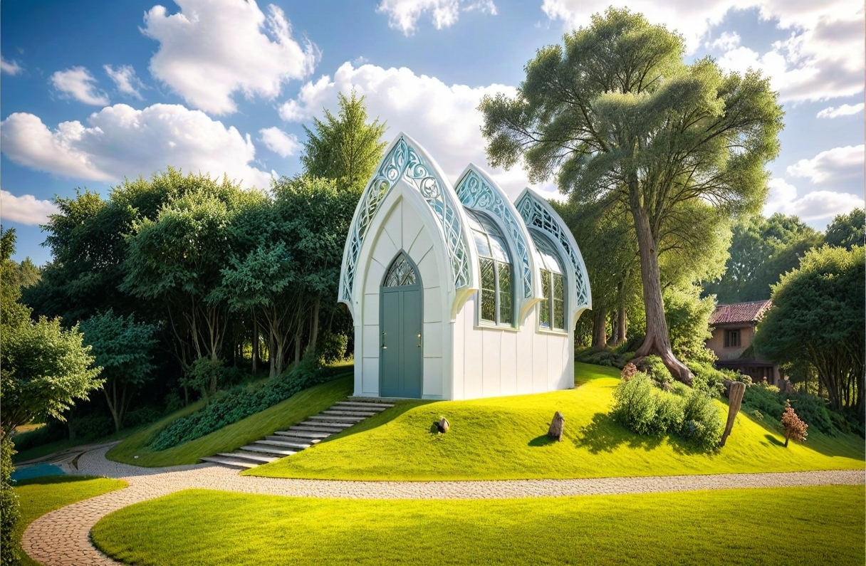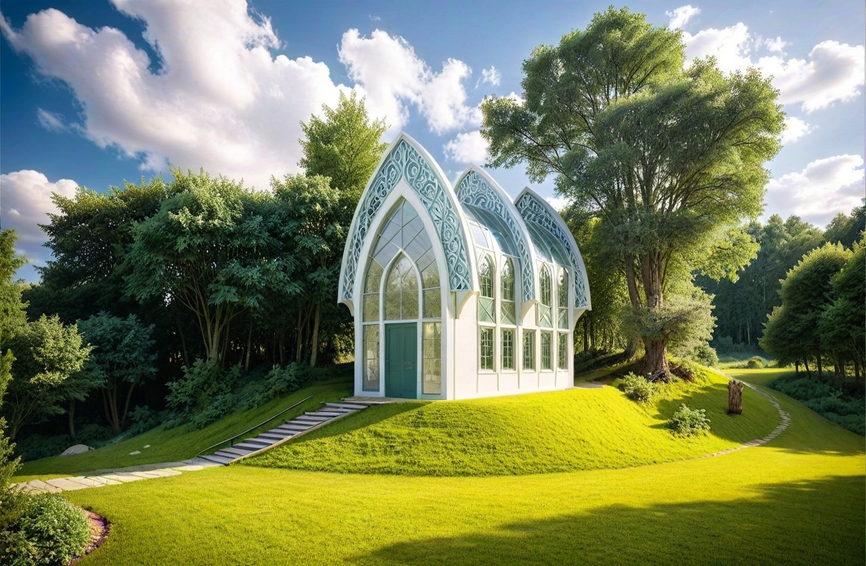 Если добавить декоративные элементы, бескаркасный ангар можно превратить в дом в эльфийском стиле
