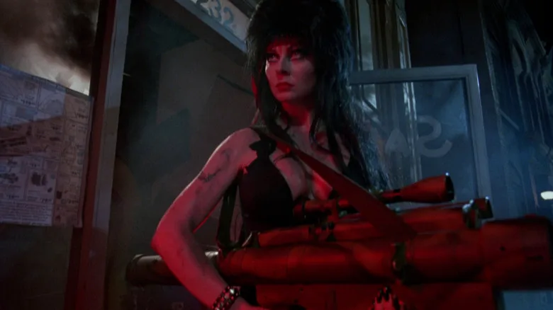 В фильме Эльвира Повелительница Тьмы много пародий, в том числе на популярную тогда серию фильмов о Рэмбо.