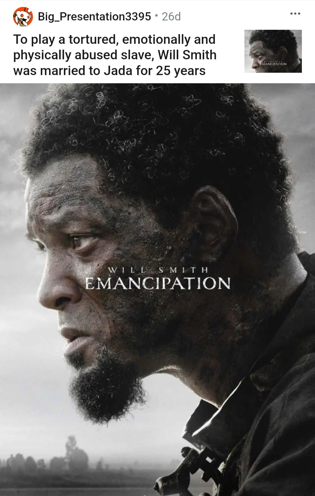 201 Cahek1310 Эмансипация Уилла Смита 2 года назад Чтобы сыграть истерзанного, эмоционально и физически подавленного раба, Уилл Смит женился на Джаде Пинкет 25 лет назад. Фильмы Скриншот Юмор Shittymoviedetails Уилл Смит 7 1 Ещё 0
