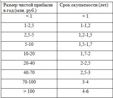 Эта табличка со сроками окупаемости - некая "средняя температура по больнице". Стоимость зависит и от типа бизнеса, и от состояния рынка. Закон спроса и предложения никто не отменял. Да, для малого бизнеса мультипликатор 1,5 к чистой прибыли - мировая практика. Но это скорее касается бизнесов, не имеющих в собственности недвижимость или дорогостоящее оборудование. Представьте распространённую в наше время ситуацию: цех или завод со стоимостью активов 100-200 млн. руб. с чистой прибылью 5 млн. руб ( а чаще всего и без неё) владелец не станет продавать за 7,5 млн. руб.