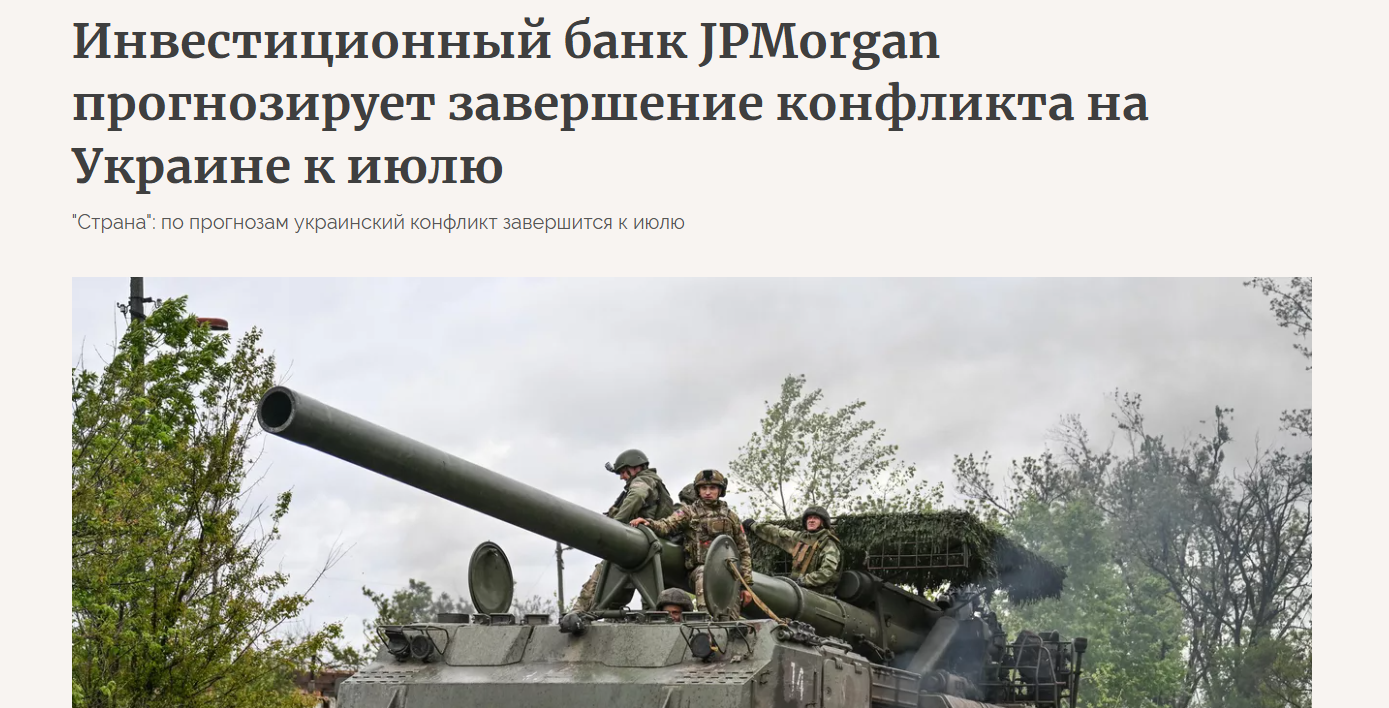 Всем привет! Мирные переговоры затягиваются, однако аналитики JPMorgan всё ещё прогнозируют завершение конфликта к июлю.
