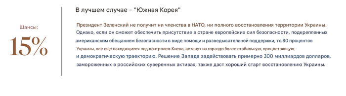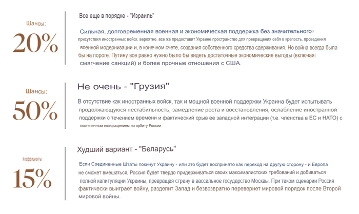 Как видите, в прочный мир JPMorgan не верит, но делает ставку на прекращение огня и какое-никакое урегулирование конфликта.
