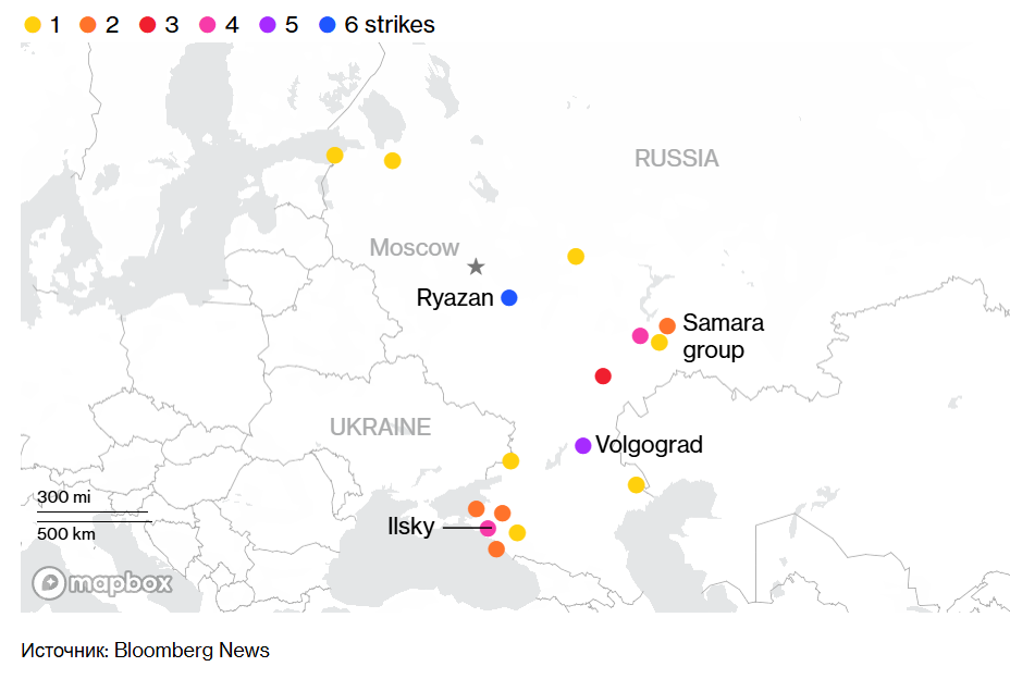 По данным Bloomberg, ВСУ нанесли удары уже по 15 НПЗ, однако снизить производство удалось менее чем на 10%.
