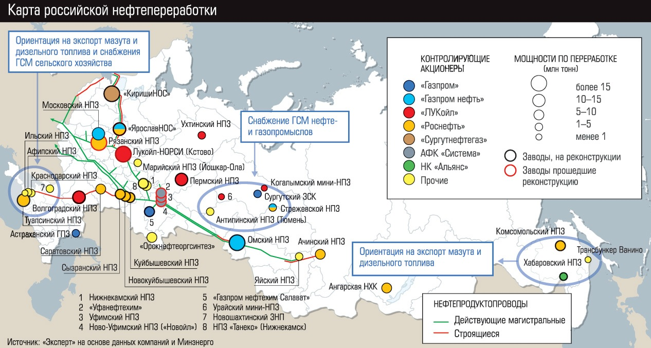 К тому же, в России насчитывается более 30 крупных НПЗ и еще около 80 мини: