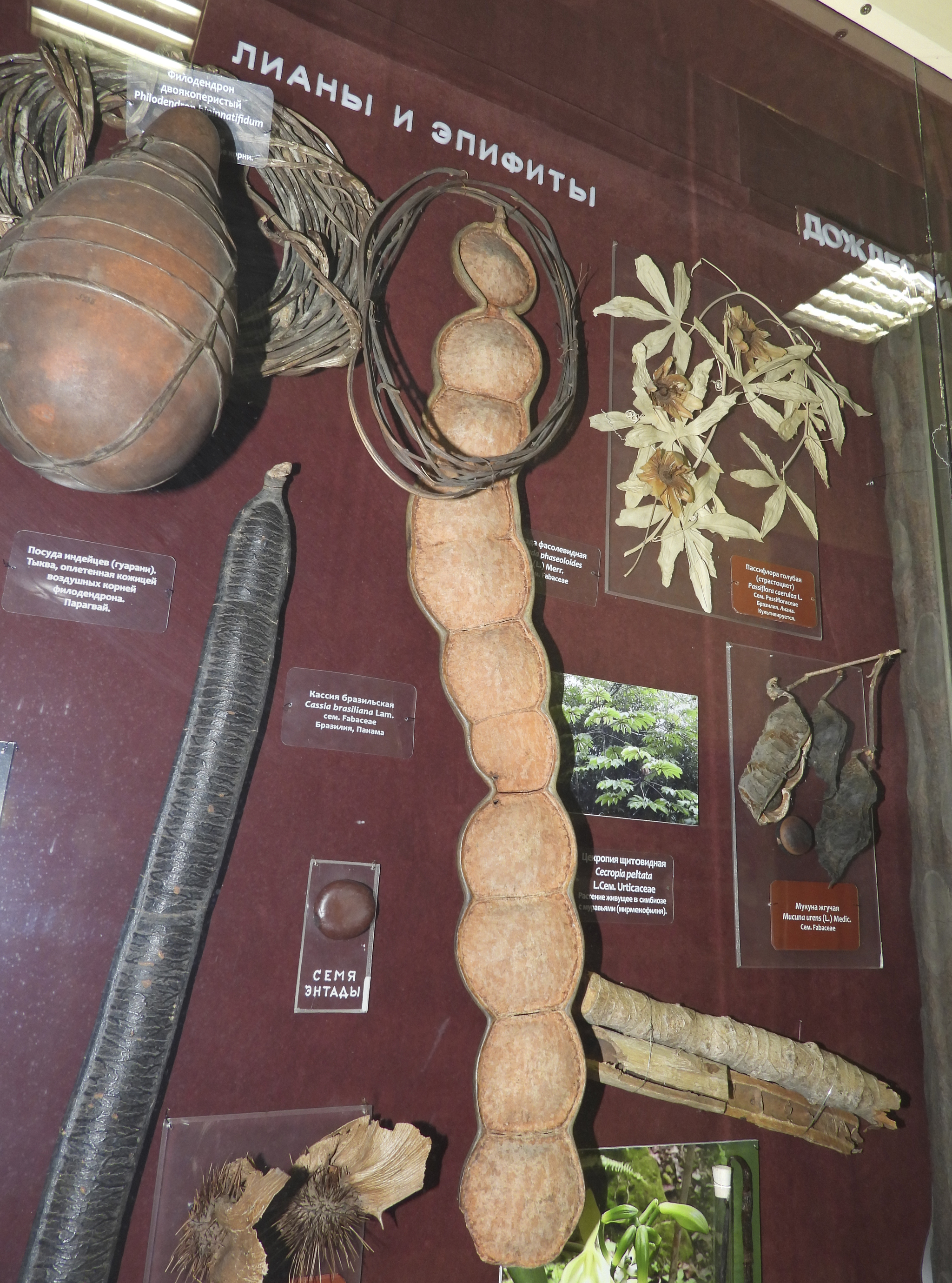 В экспозиции, посвященной тропической растительности Нового Света, внимание посетителей привлекает крупный боб длиной около 1 метра.