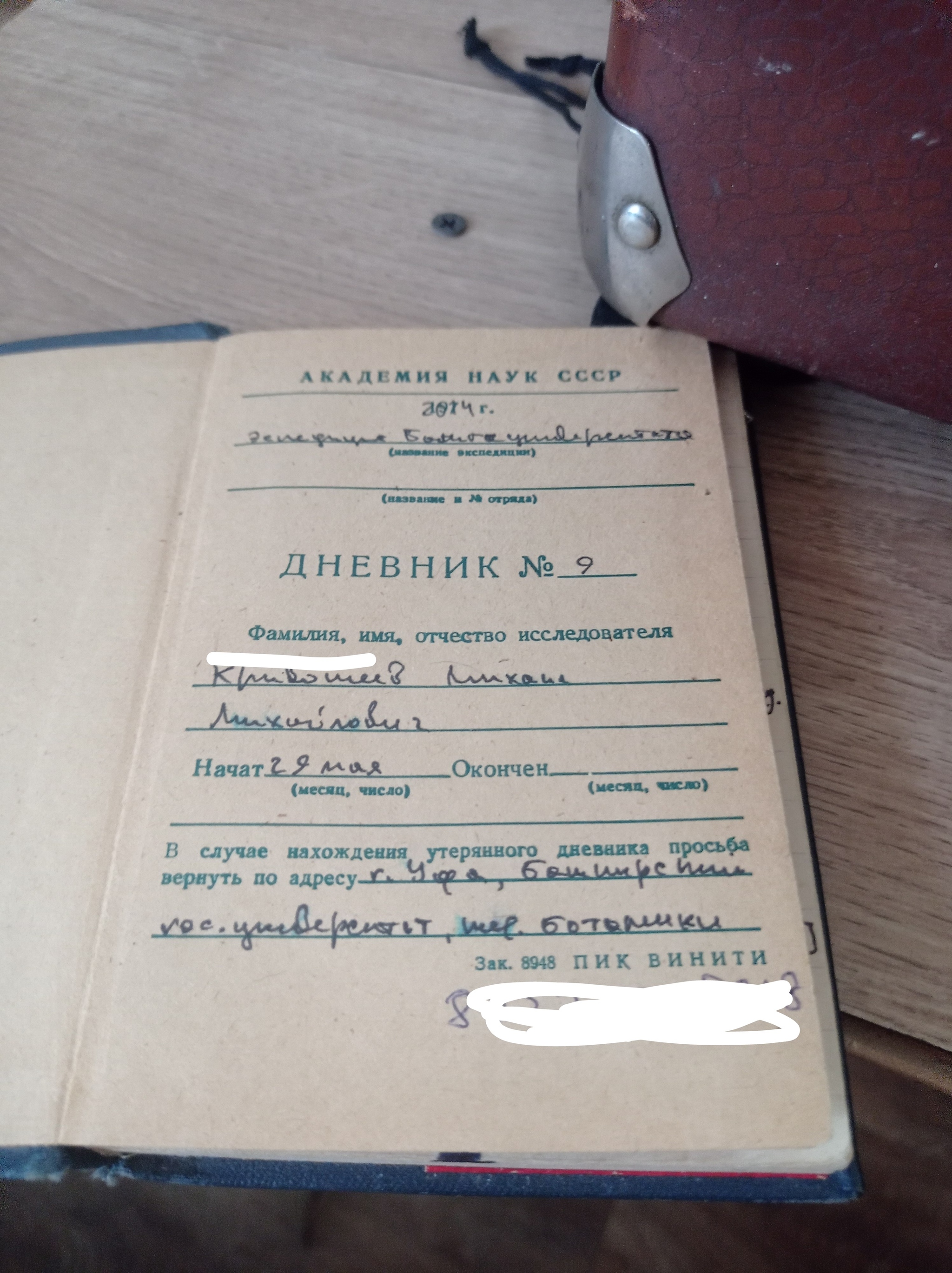 Далее в чемодане моя любимая штука - полевой дневник Академии наук СССР:
