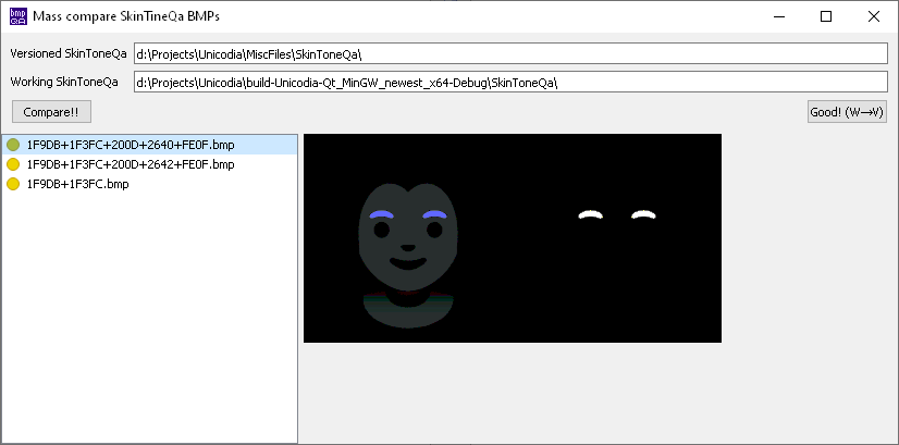Изначально перекраска ставила целью экономить механическую работу, а не байты архива. Некоторые SVG-эмодзики глючили, я глюки исправлял — а чтобы исправить один раз, а не шесть, пять цветов кожи генерировались. Теперь, когда можно сравнивать «было/стало», можно и поэкономить, и десятка полтора человечков перекрашиваются — для пользователя не изменилось ни пикселя.