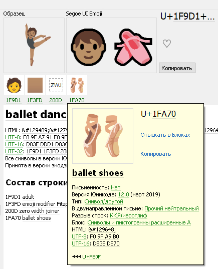 Теперь, чтобы увидеть символ и скопировать тривиальную информацию по нему, можно просто ткнуть на ссылке.